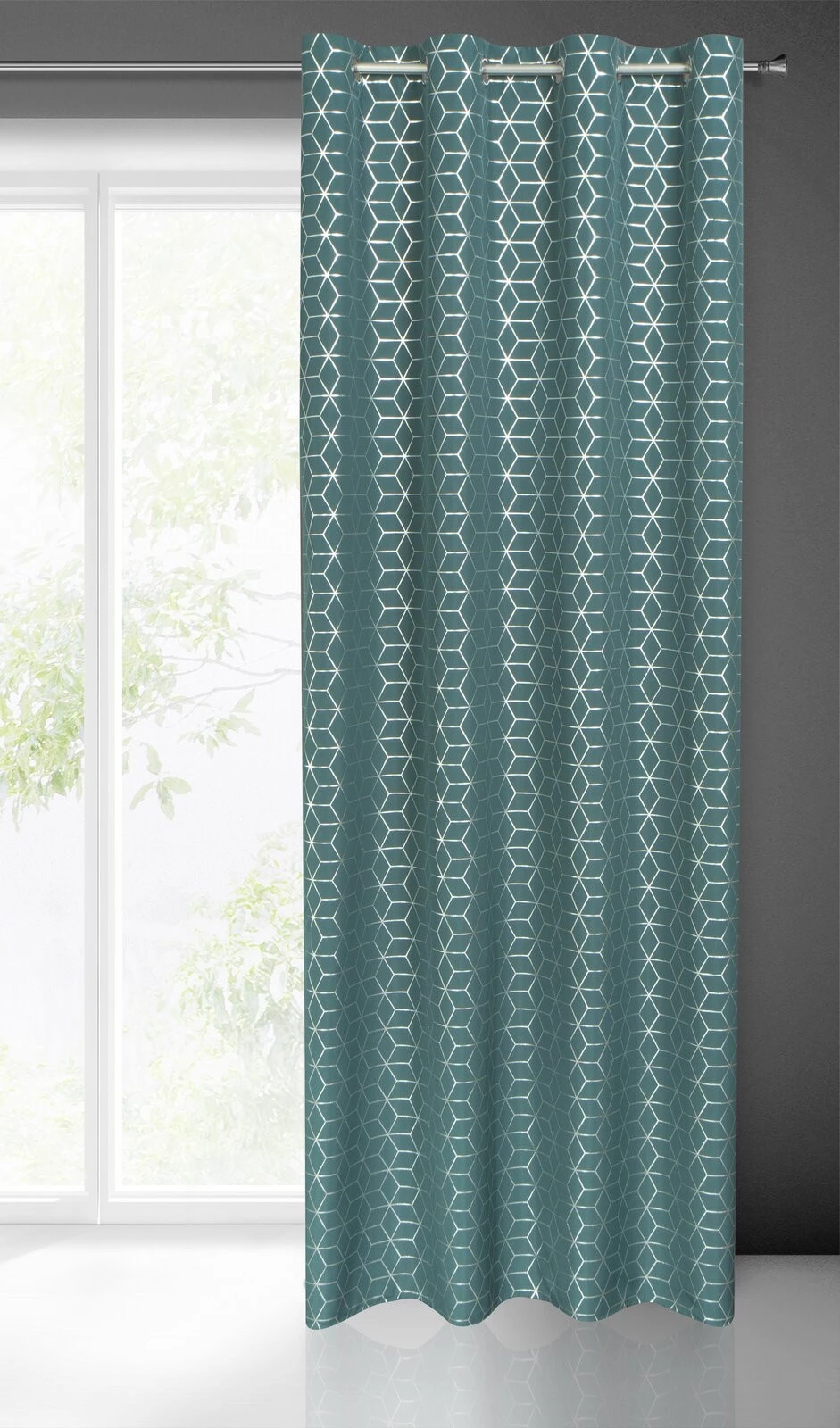 - Zasłona oxford na przeloce z geometrycznym srebrnym nadrukiem szerokość: 140 cm, długość: 250 cm, kolor: ciemnoturkusowy, Gramatura: 140 GSM, Skład: 100% poliester