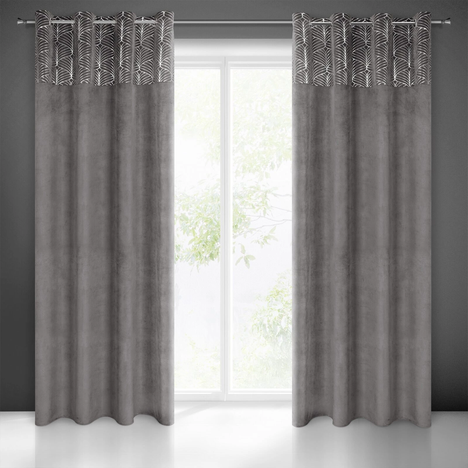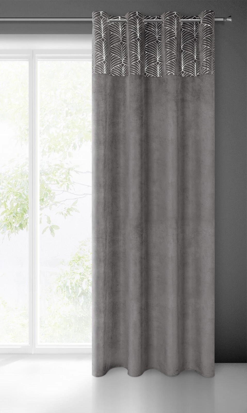 Zasłona welwetowa zdobiona kryzą ze srebrnym nadrukiem szerokość: 140 cm, długość: 250 cm, kolor: grafitowy, Gramatura: 200 GSM, Skład: 100% poliester