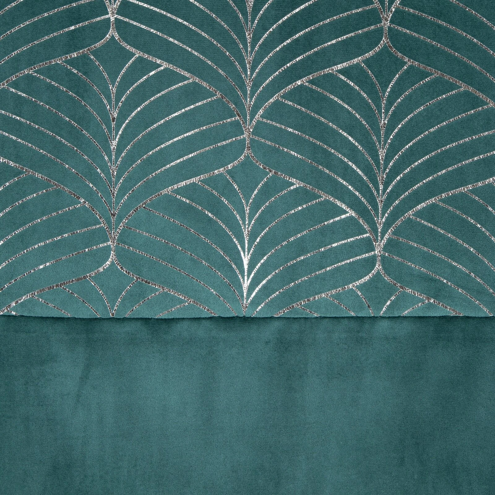 - Zasłona welwetowa zdobiona kryzą ze srebrnym nadrukiem szerokość: 140 cm, długość: 250 cm, kolor: turkusowy, Gramatura: 200 GSM, Skład: 100% poliester