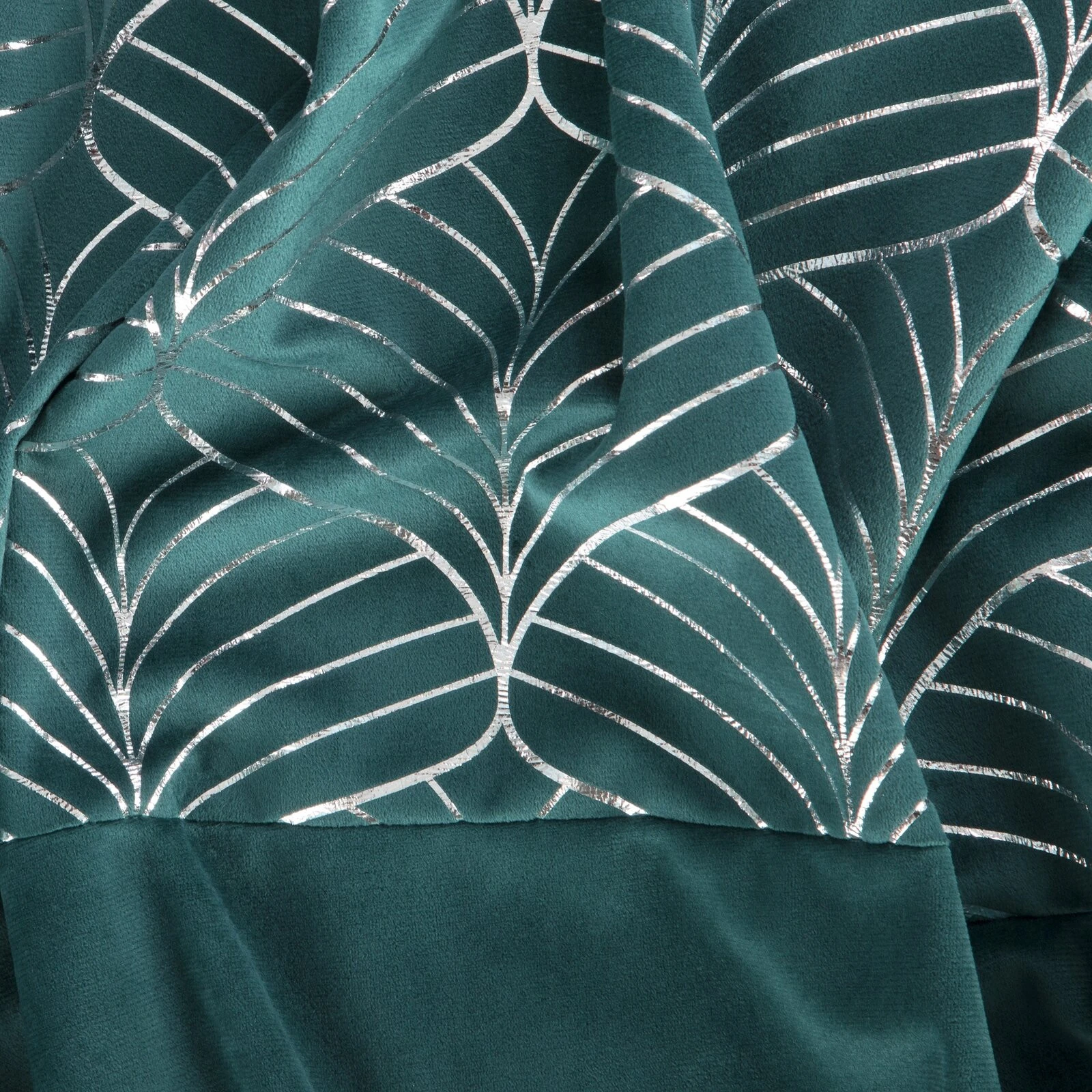 Zasłona welwetowa zdobiona kryzą ze srebrnym nadrukiem szerokość: 140 cm, długość: 250 cm, kolor: turkusowy, Gramatura: 200 GSM, Skład: 100% poliester