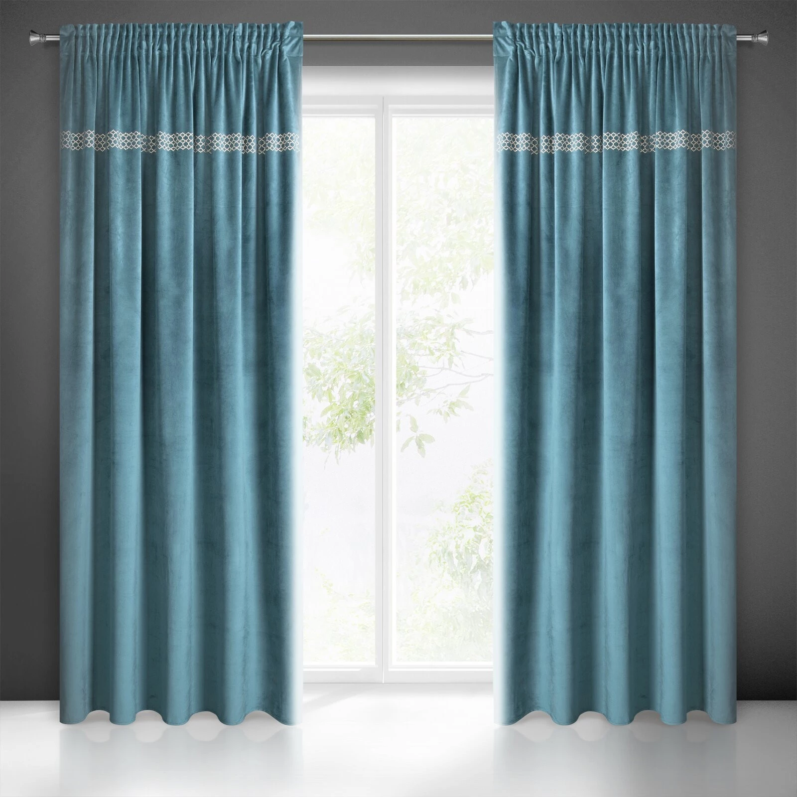 - Zasłona welwetowa ze wzorem z szampańskich dżetów szerokość: 140 cm, długość: 270 cm, kolor: ciemnoturkusowy, Gramatura: 200 GSM, Skład: 100% poliester