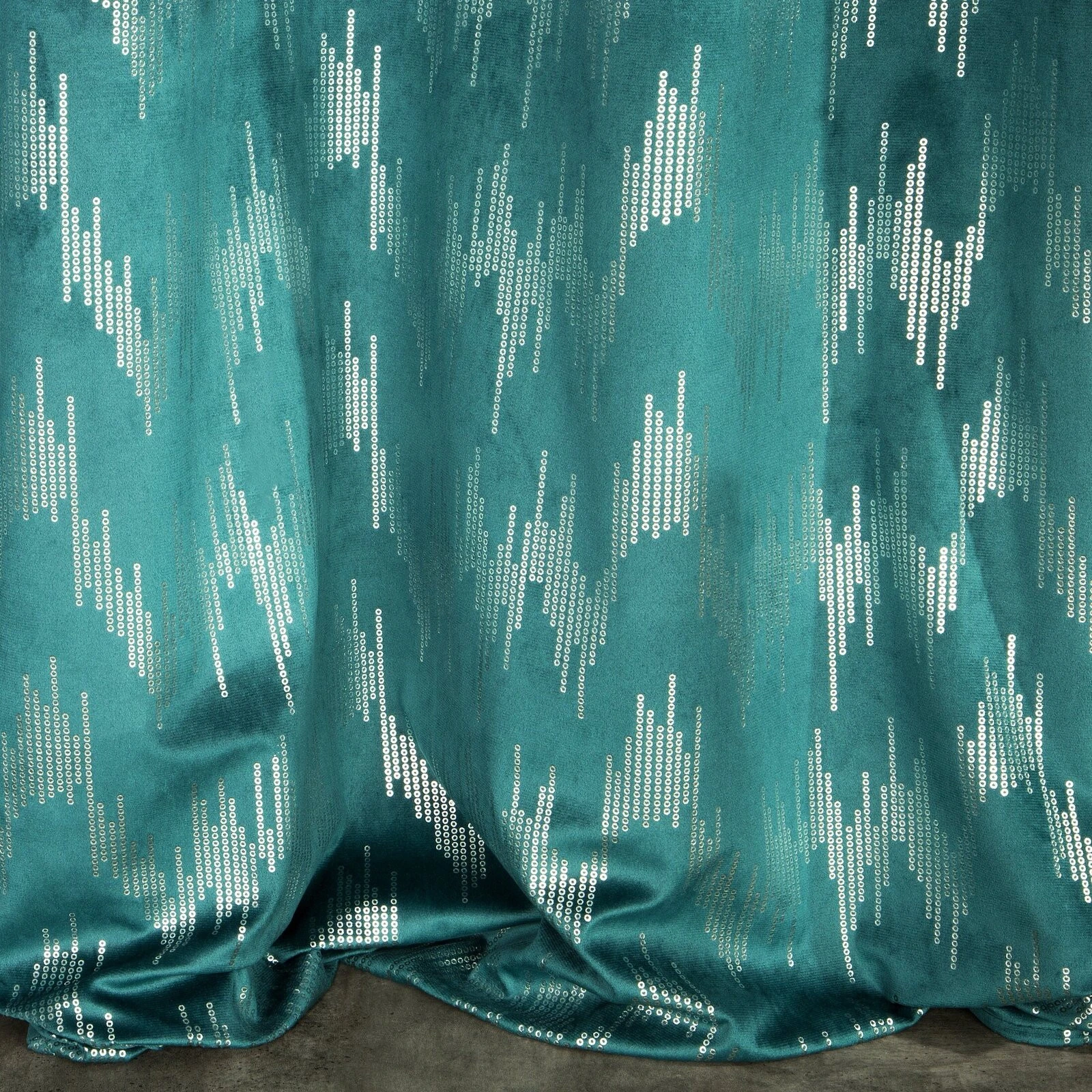 - Zasłona welwetowa ze srebrnym nadrukiem szerokość: 140 cm, długość: 250 cm, kolor: turkusowy, Gramatura: 200 GSM, Skład: 100% poliester