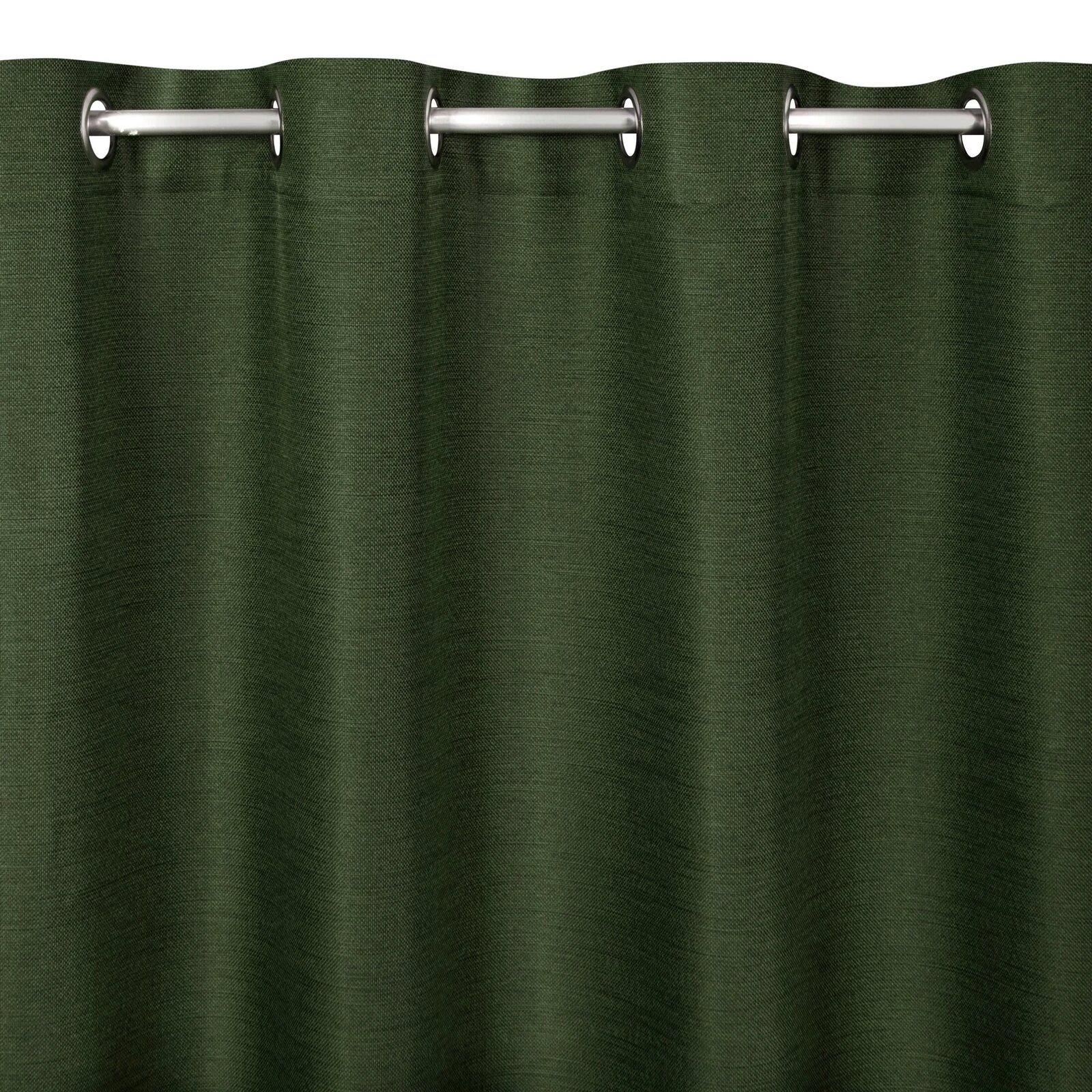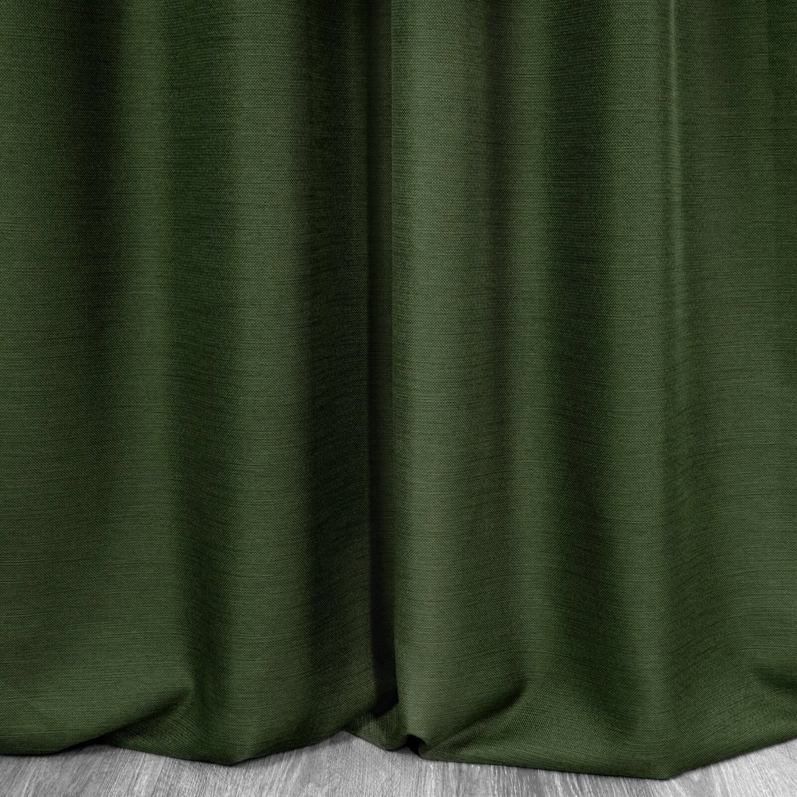 Prosta zasłona jednokolorowa o strukturze przypominającej płótno, łatwo się upina i tworzy miękkie fale. szerokość: 140 cm, długość: 250 cm, kolor: ciemnozielony, Gramatura: 187 GSM, Skład: 100% poliester