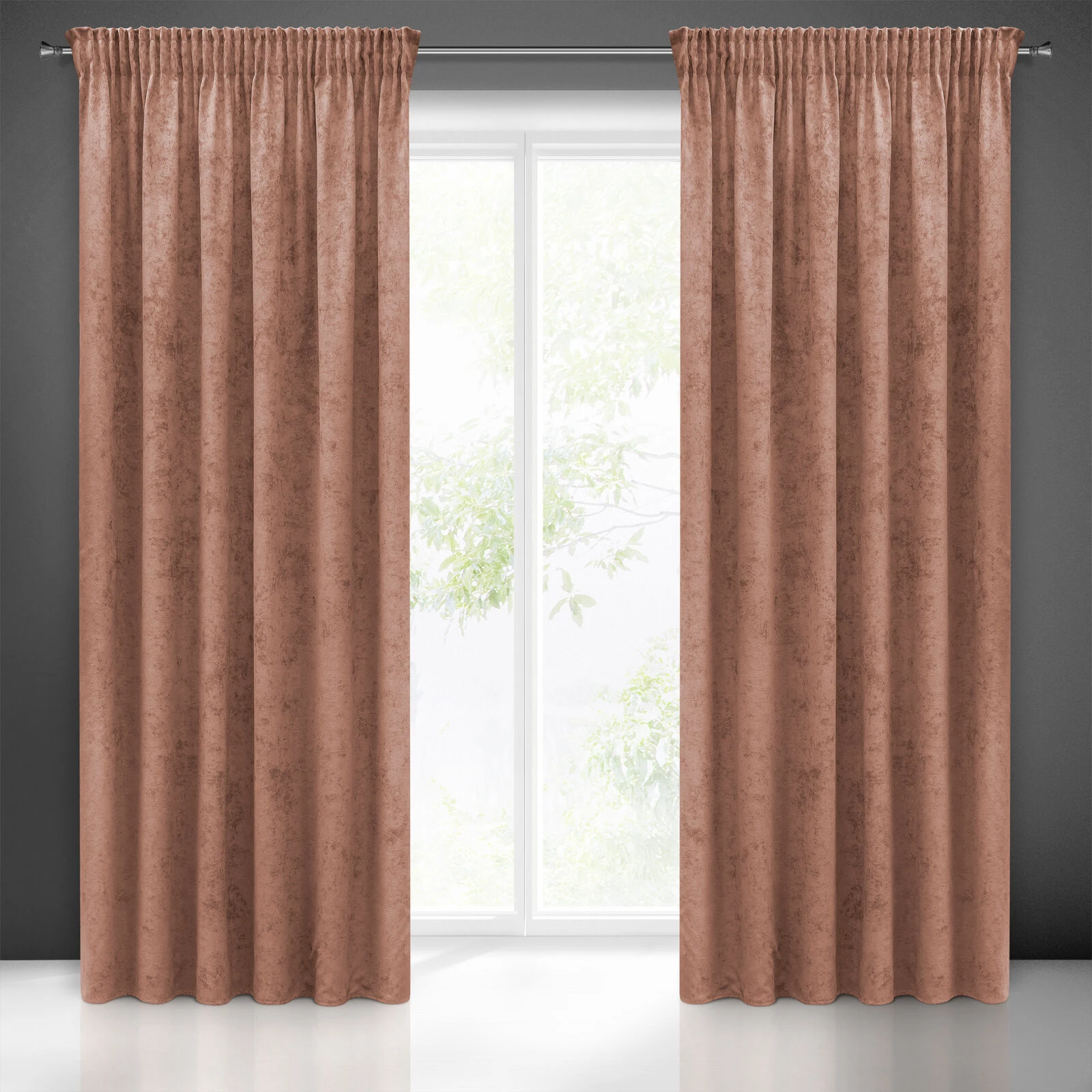 - Zasłona gotowa jednokolorowa szenilowa szerokość: 140 cm, długość: 270 cm, kolor: ciemnoróżowy, Gramatura: 210 GSM, Skład: 100% poliester