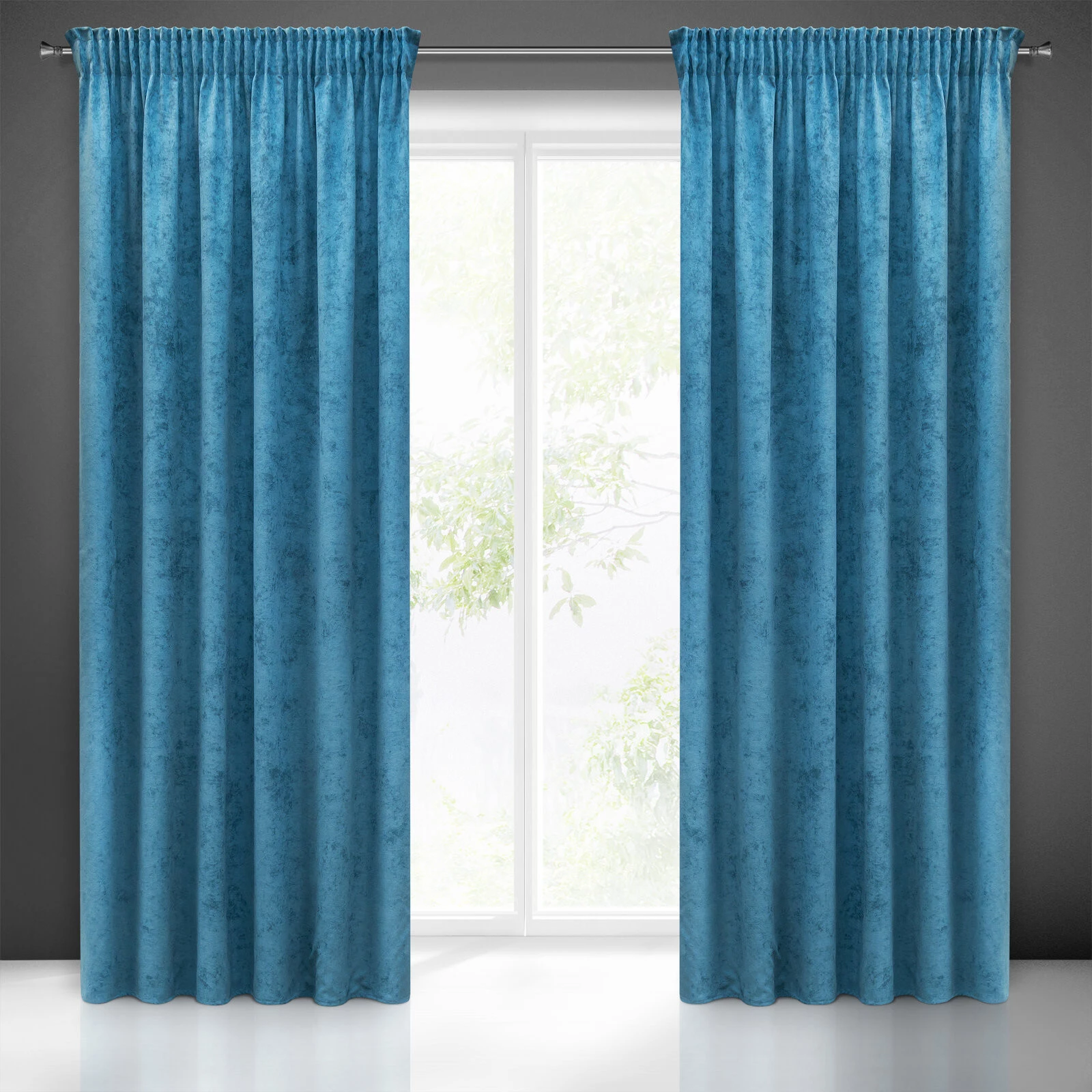 Zasłona gotowa jednokolorowa szenilowa szerokość: 140 cm, długość: 270 cm, kolor: turkusowy, Gramatura: 210 GSM, Skład: 100% poliester