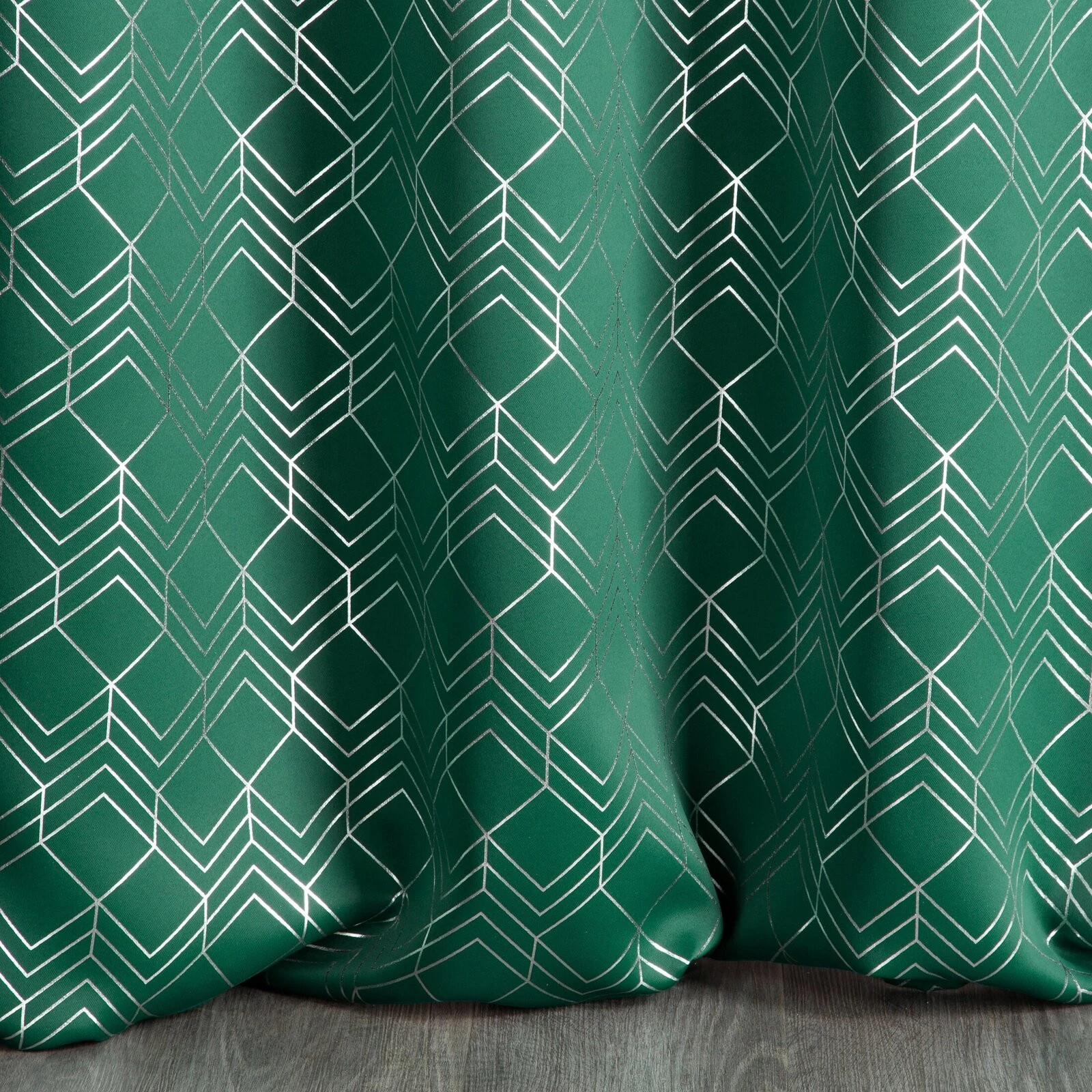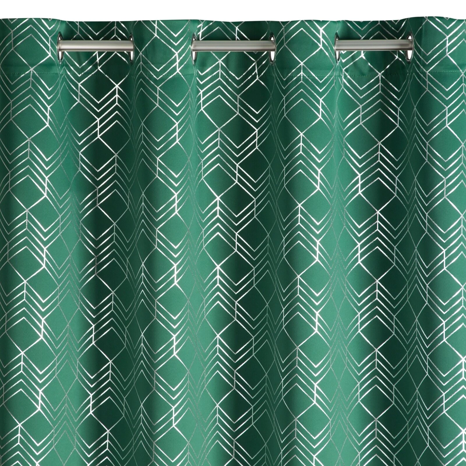 Gotowa zasłona zaciemniająca ze srebrnym nadrukiem szerokość: 140 cm, długość: 250 cm, kolor: zielony, Gramatura: 190 GSM, Skład: 100% poliester