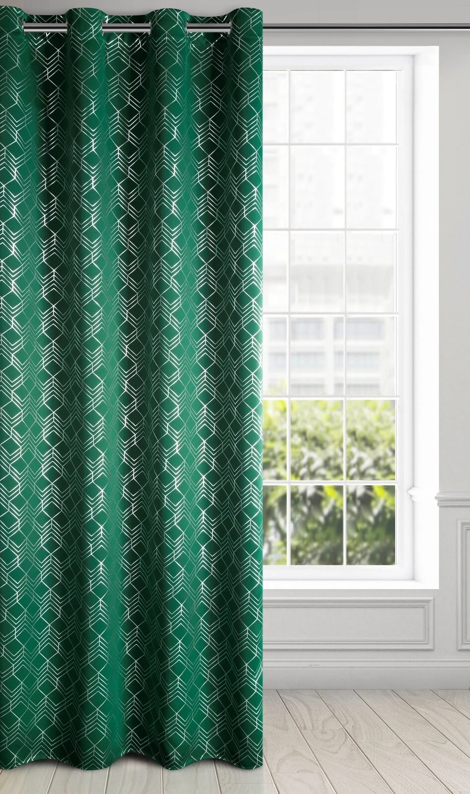 - Gotowa zasłona zaciemniająca ze srebrnym nadrukiem szerokość: 140 cm, długość: 250 cm, kolor: zielony, Gramatura: 190 GSM, Skład: 100% poliester