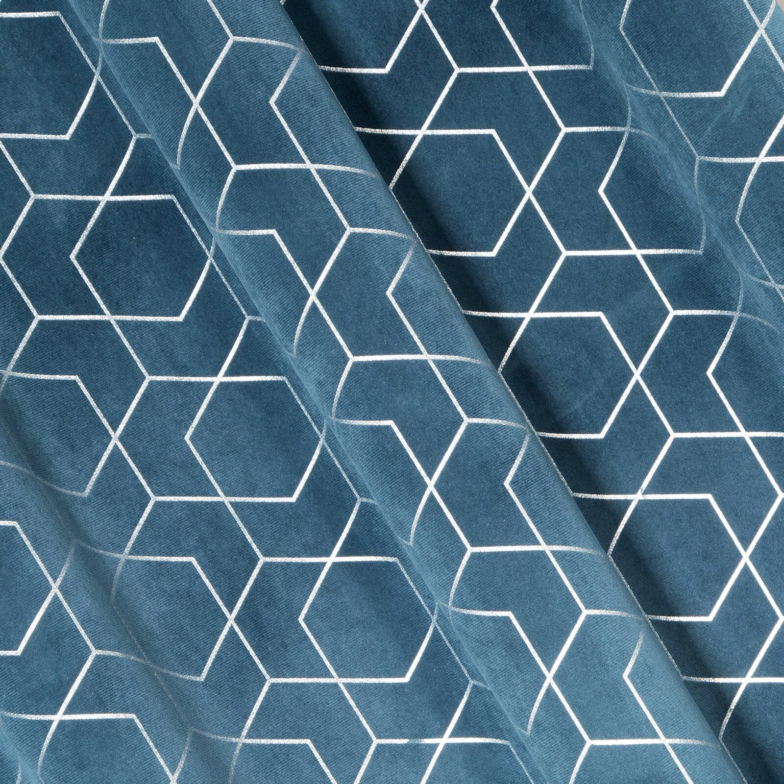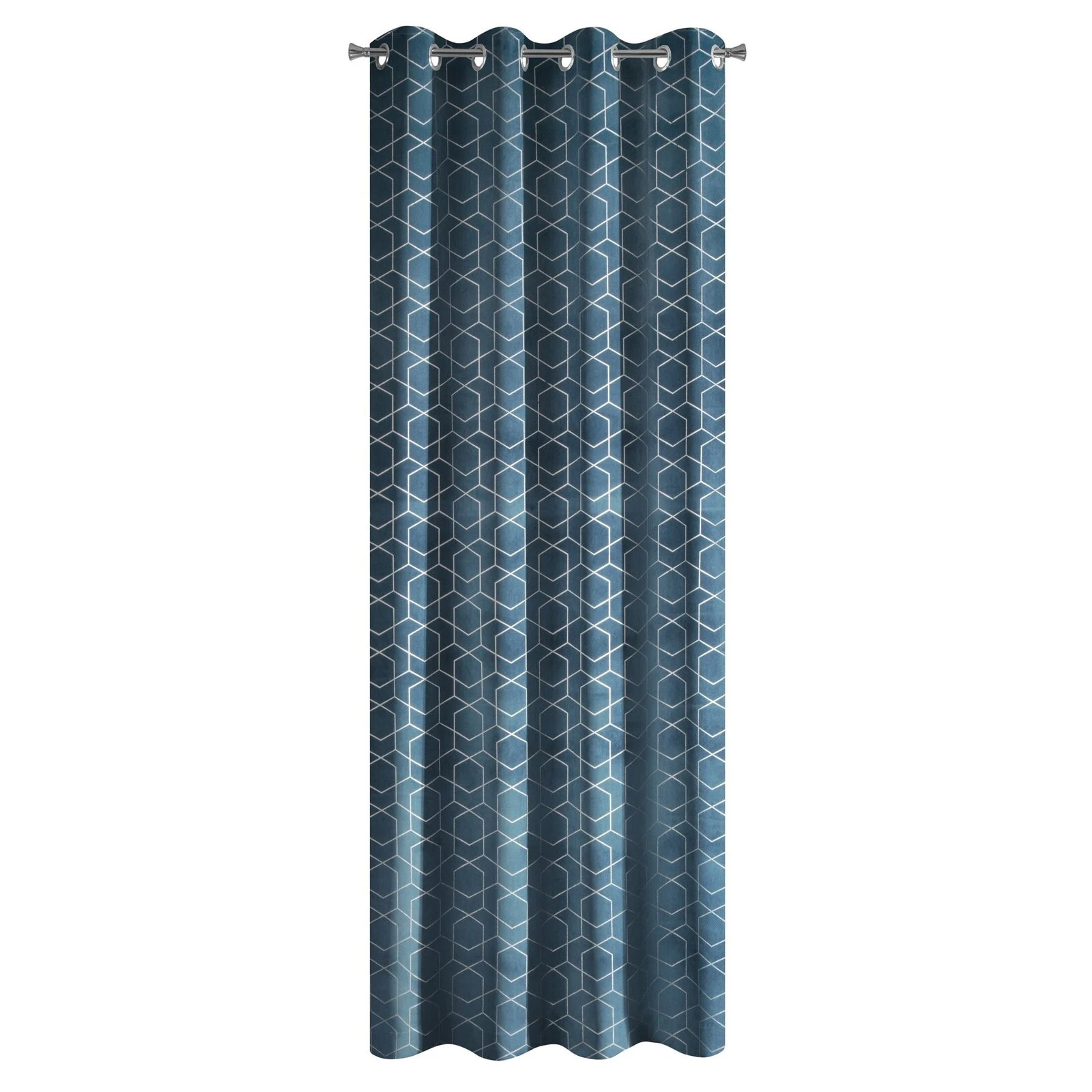 Nowoczesna, wręcz futurystyczna zasłona zdobiona gęsto wplecioną srebrną nicią świetnie odbija światło. Lekka tkanina łatwo się układa w miękkie, lśniące fale. szerokość: 135 cm, długość: 250 cm, kolor: granatowy, Gramatura: 210 GSM, Skład: 100% poliester