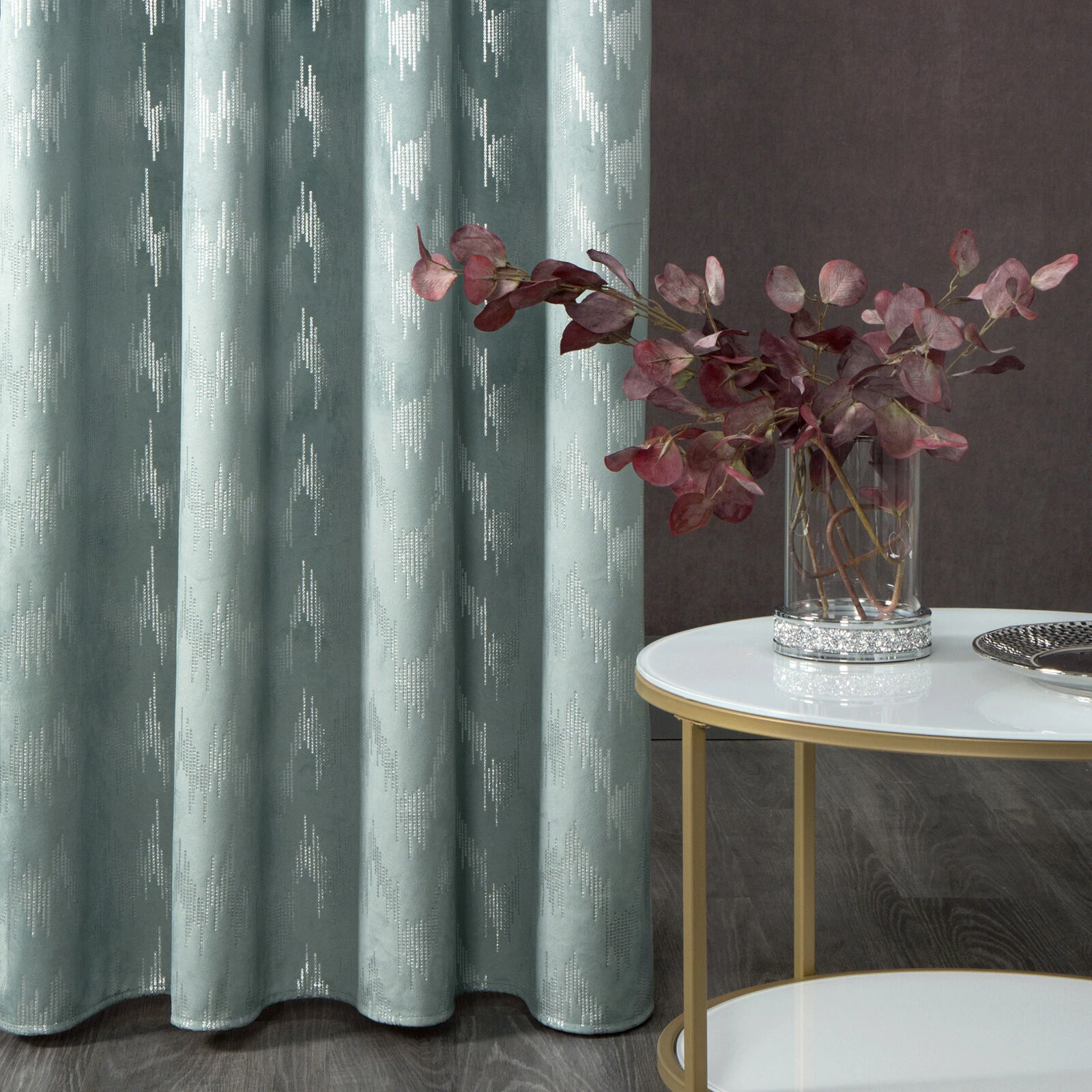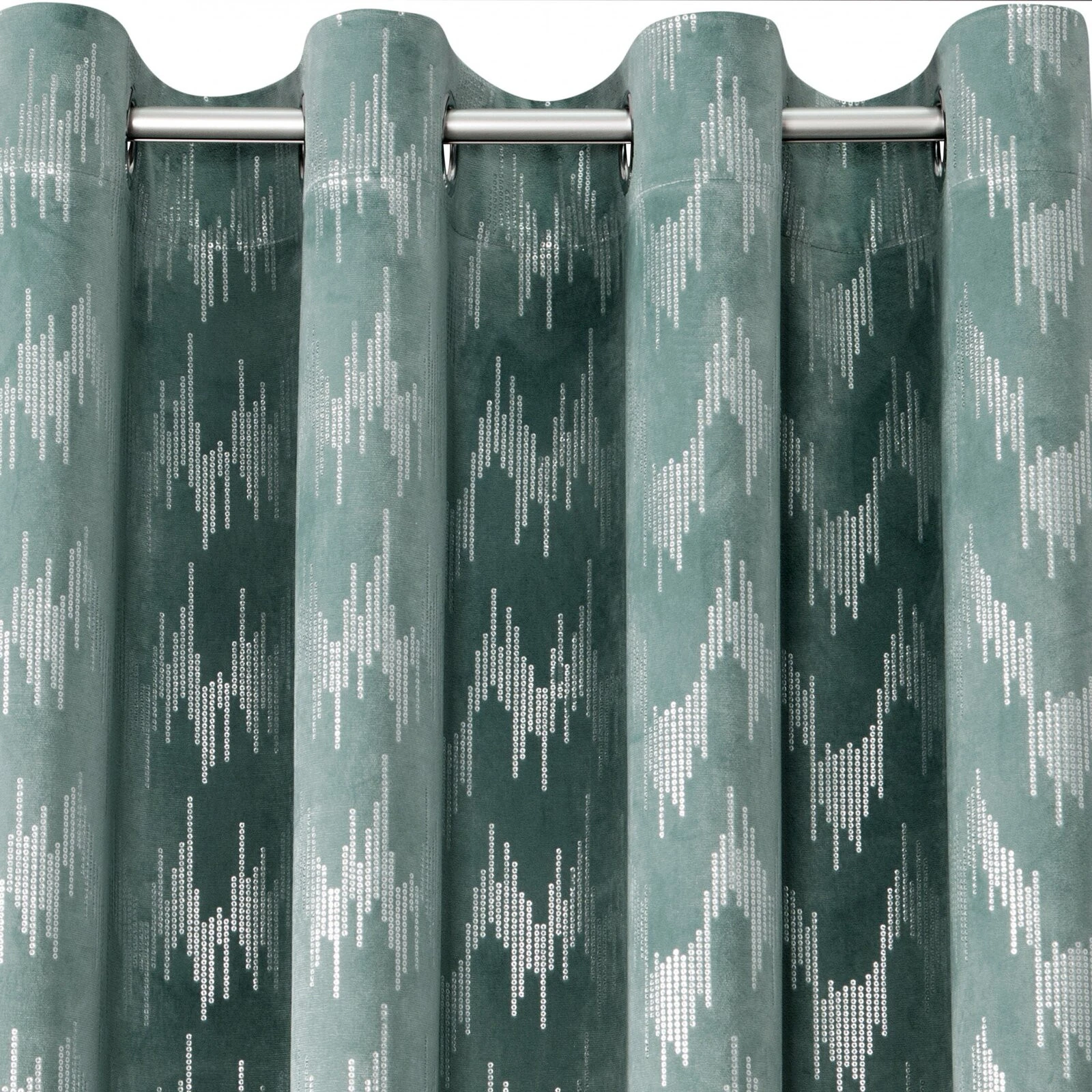 - Zasłona welwetowa ze srebrnym nadrukiem szerokość: 140 cm, długość: 250 cm, kolor: morski, Gramatura: 215 GSM, Skład: 100% poliester