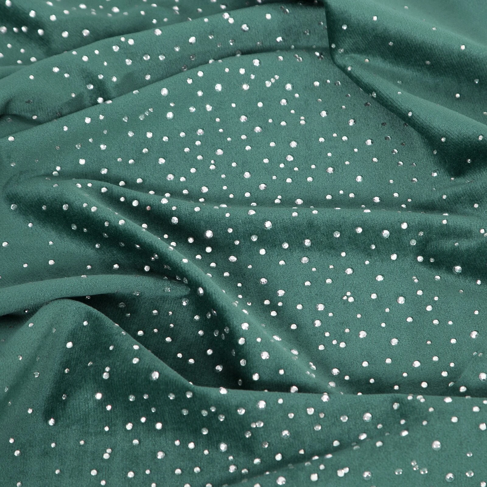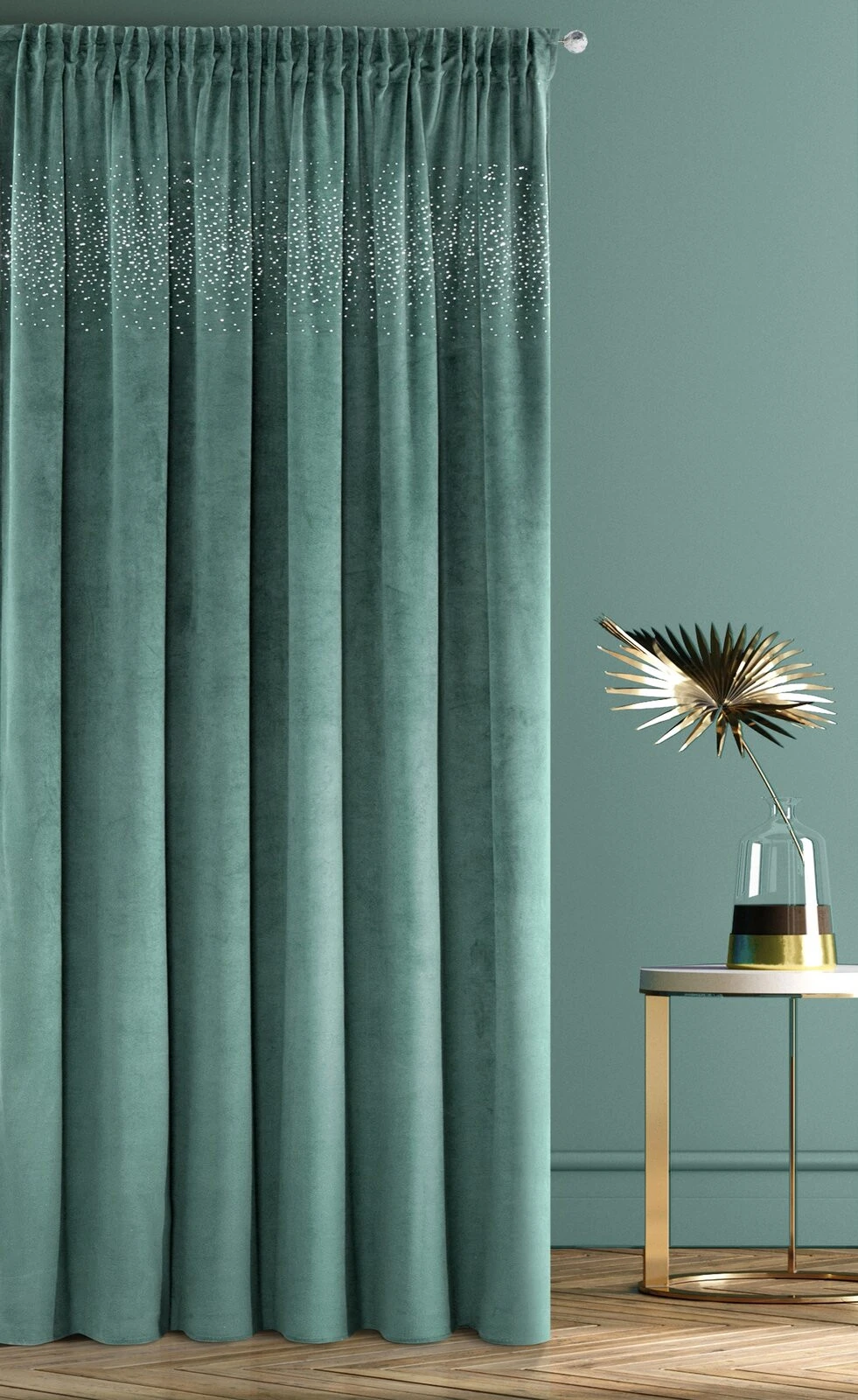 Zasłona welwetowa ze srebrnymi cyrkoniami szerokość: 140 cm, długość: 270 cm, kolor: ciemnoturkusowy, Gramatura: 215 GSM, Skład: 100% poliester