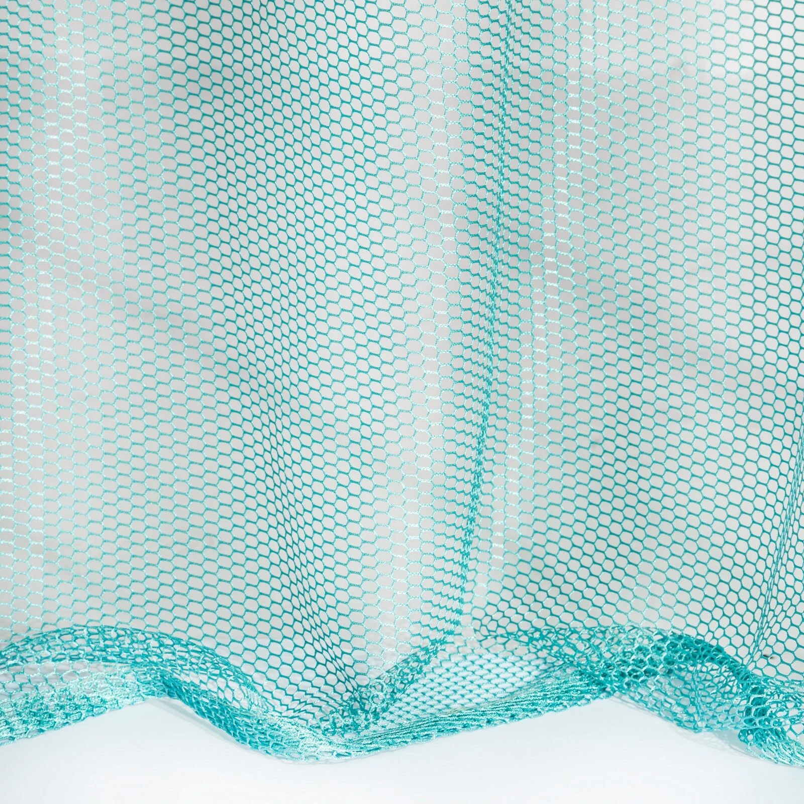 Firana gotowa o strukturze drobnej siatki szerokość: 140 cm, długość: 250 cm, kolor: turkusowy, Gramatura: 80 GSM, Skład: 100% poliester