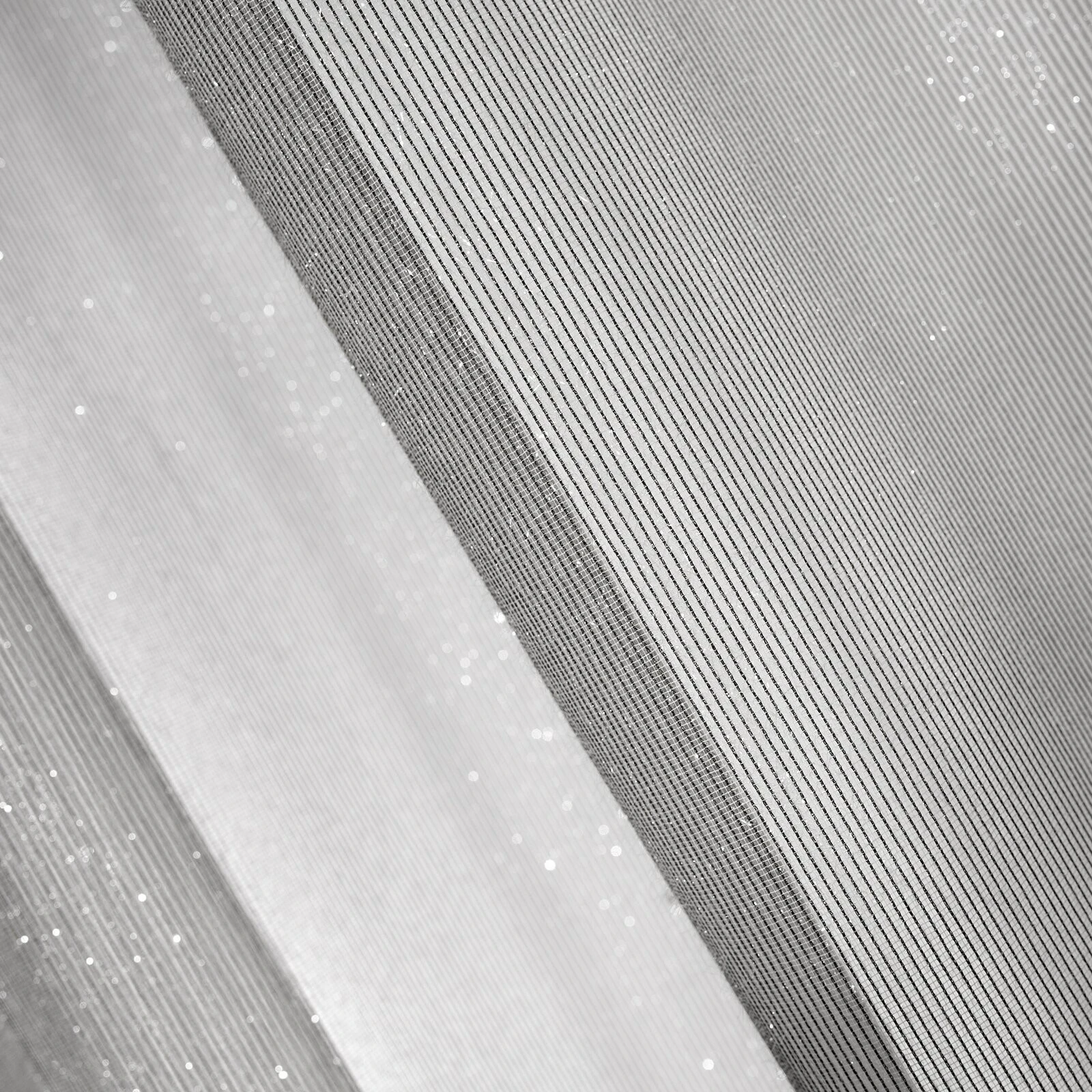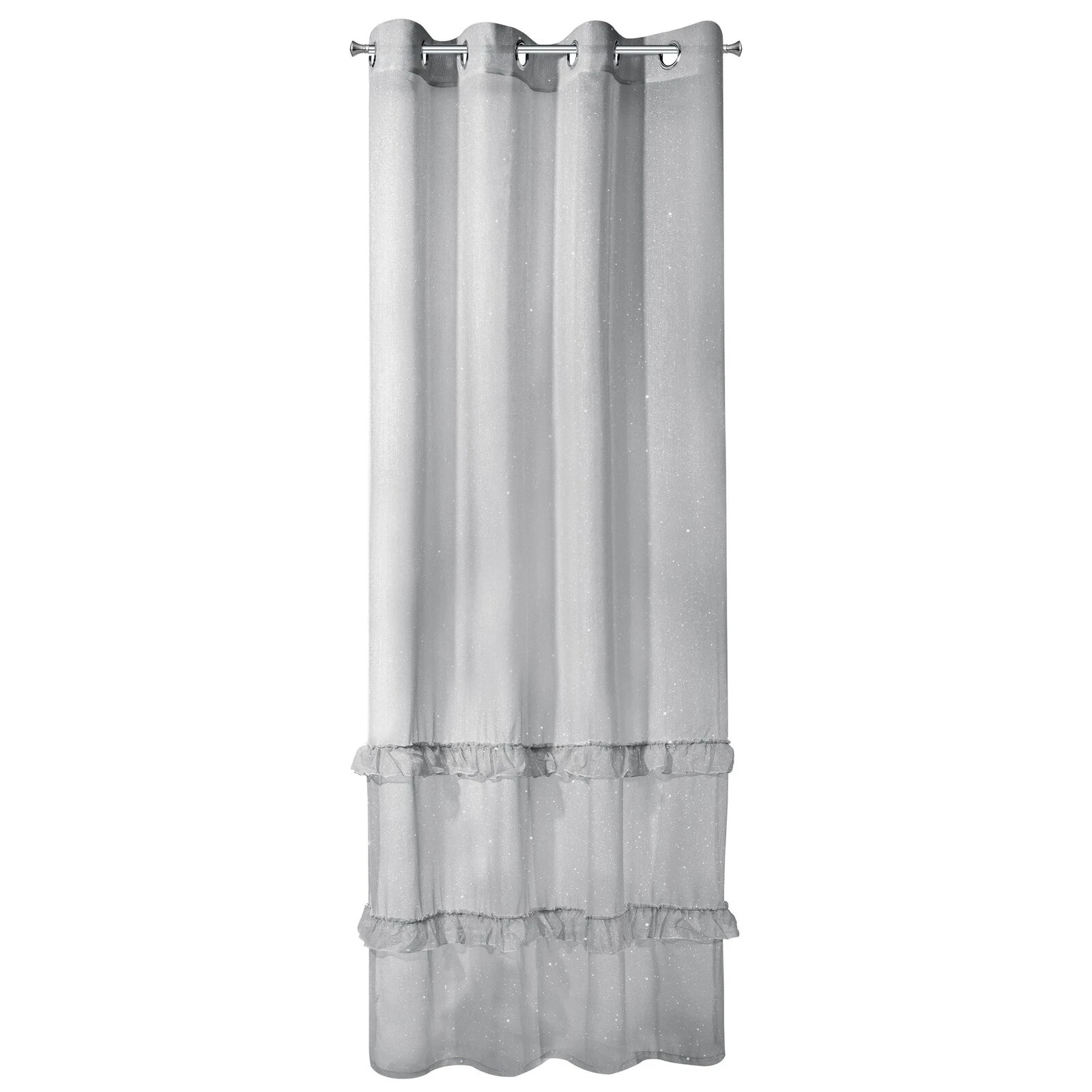 Firana jednokolorowa z moherową błyszcząca nicią zdobiona falbanami szerokość: 140 cm, długość: 250 cm, kolor: szary, Gramatura: 50 GSM, Skład: 100% poliester