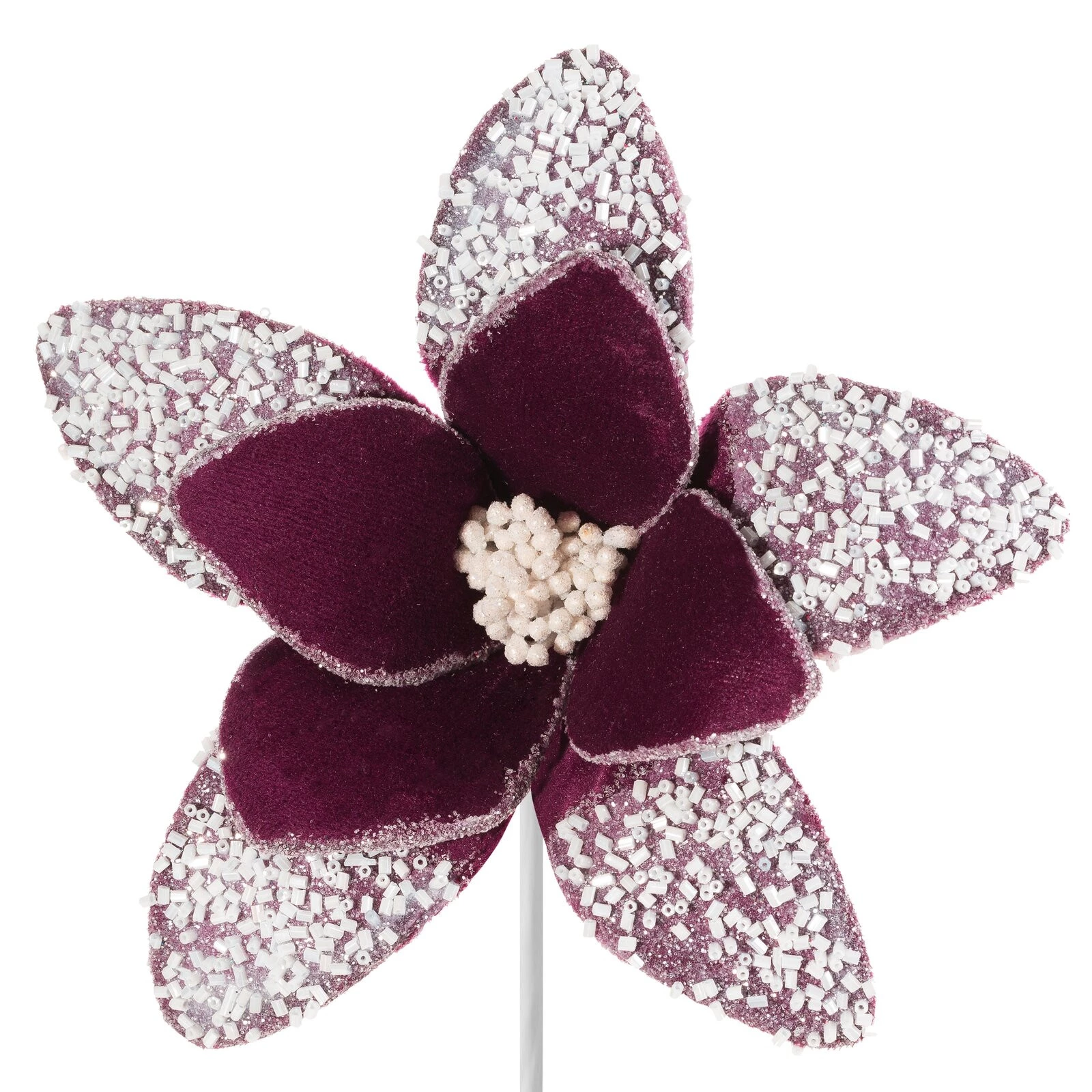Kwiat dekoracyjny welwetowy zdobiony koralikami kolor: bordowy