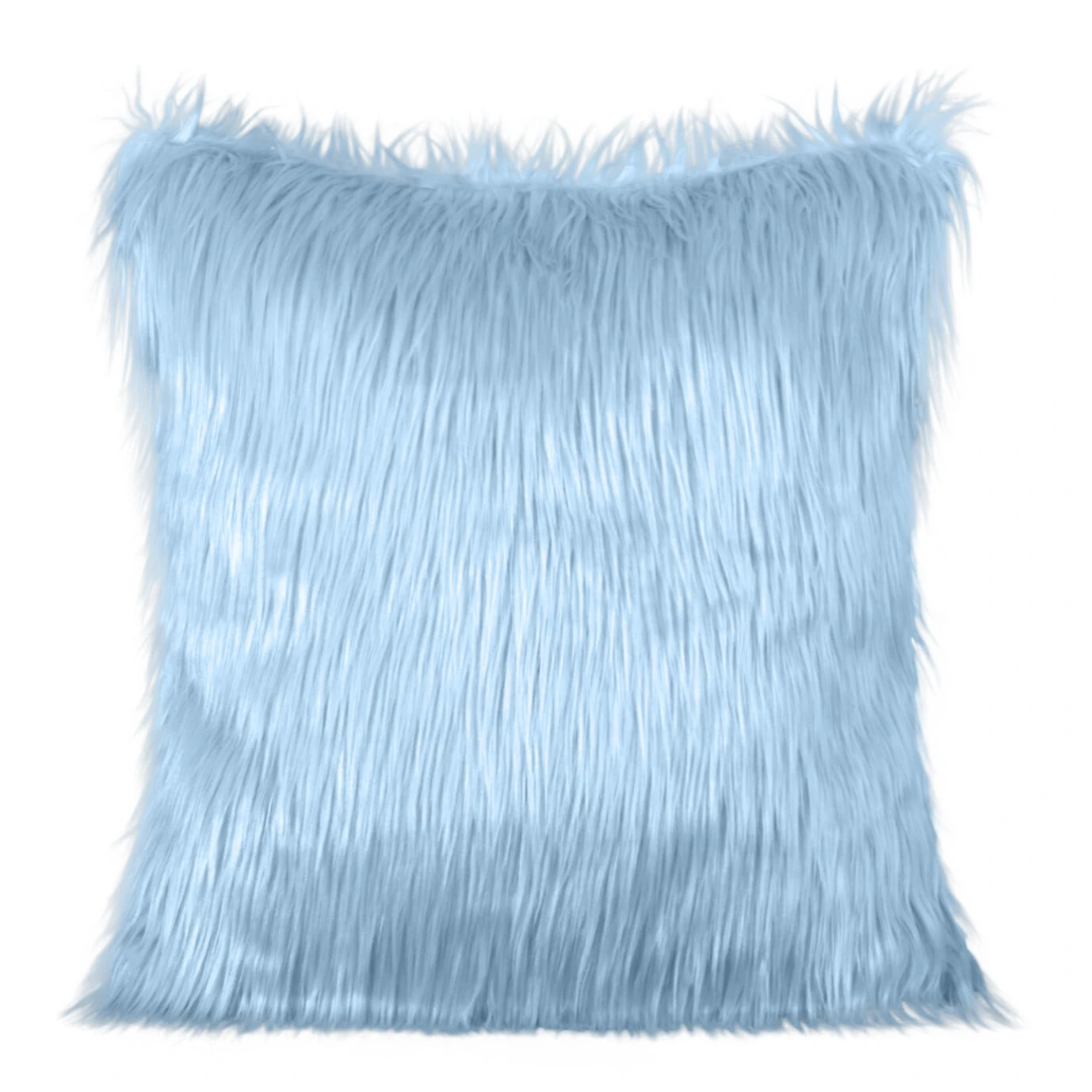 Delikatna i bardzo przyjemna w dotyku poszewka dekoracyjna z tkaniny o strukturze futerka z długim włosiem. Zapinana na zamek błyskawiczny. Nie prasować. szerokość: 45 cm, długość: 45 cm, kolor: jasnoniebieski, Skład: 100% poliester