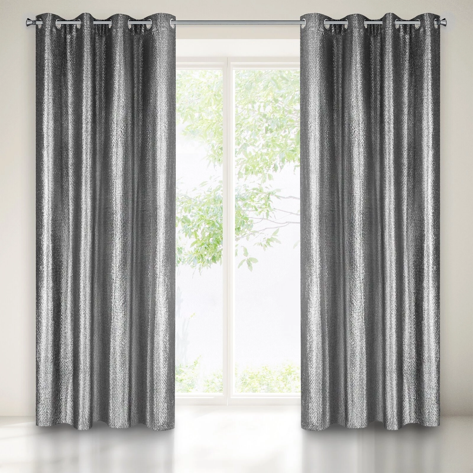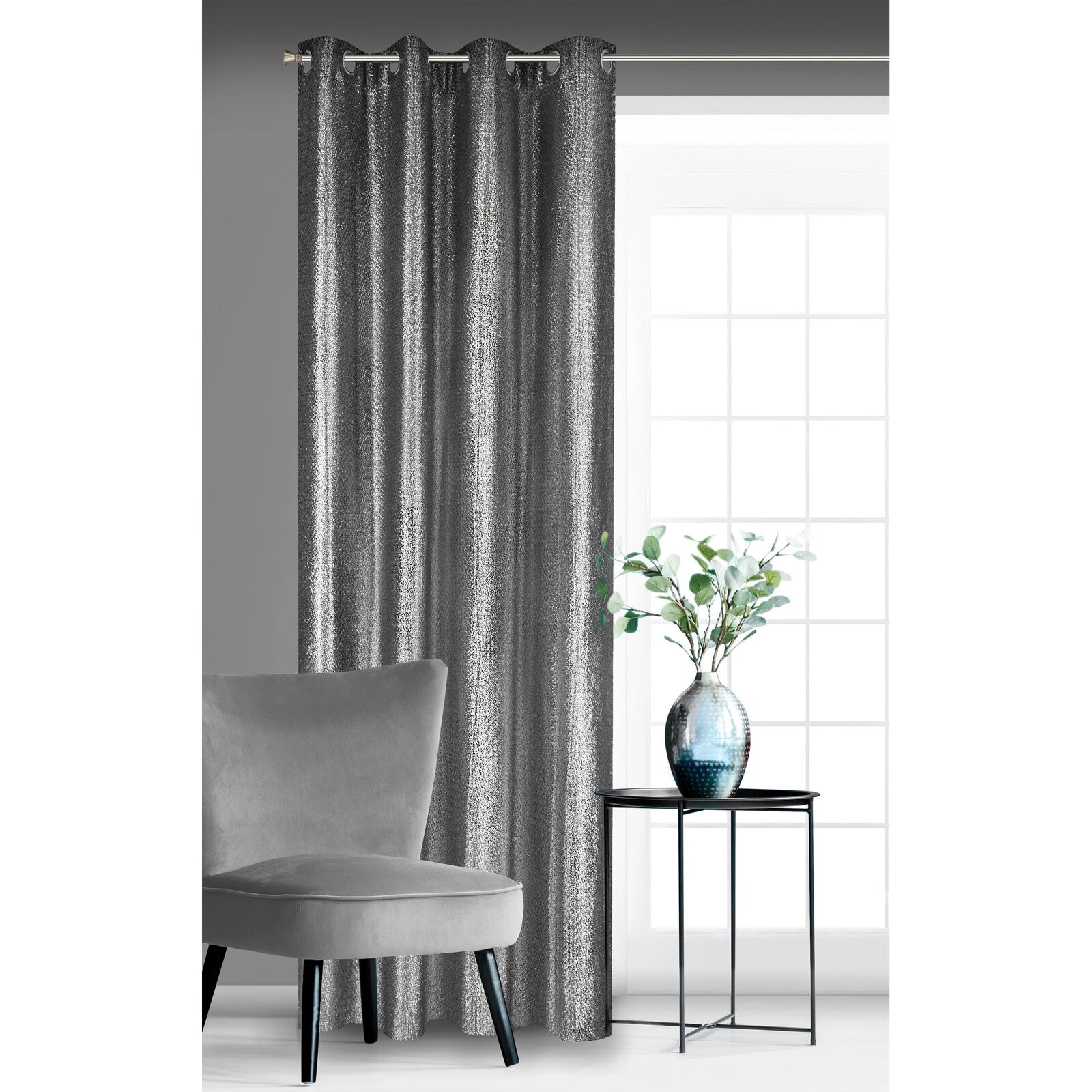 Lekka zasłona w kolorze czarnym ozdobiona jest lśniącym srebrzystym nadrukiem, który nadaje jej charakteru glamour. Zapewnia komfortowe poczucie prywatności. szerokość: 140 cm, długość: 250 cm, kolor: czarny, Skład: 100% poliester