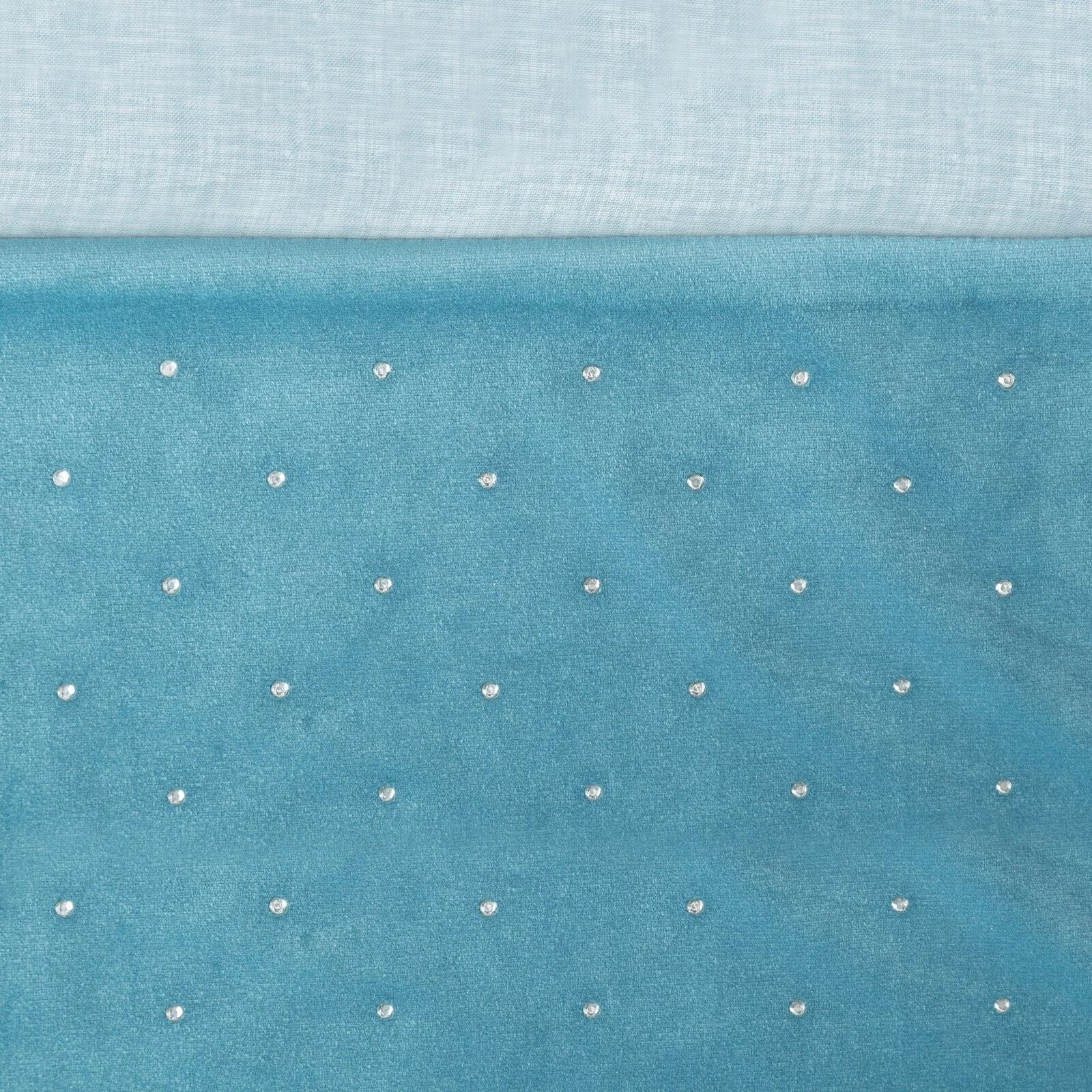 Zasłona etaminowa z welwetową wstawką z cekinami szerokość: 140 cm, długość: 250 cm, kolor: turkusowy, Gramatura: 220 GSM, Skład: 100% poliester