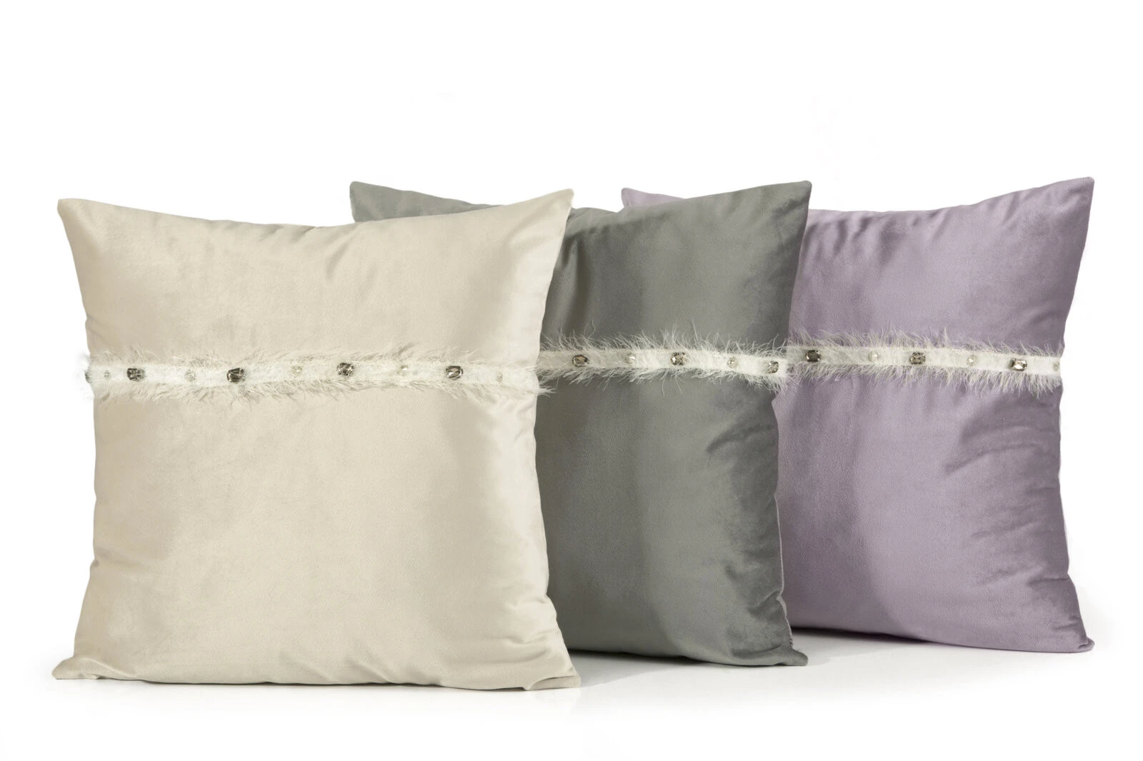 Aksamitna poszewka na poduszkę zdobiona taśmą z delikatnymi włoskami i kryształkami. Zapinana na zamek błyskawiczny. szerokość: 45 cm, długość: 45 cm, kolor: jasnobrązowy, Gramatura: 300 GSM, Skład: 100% poliester