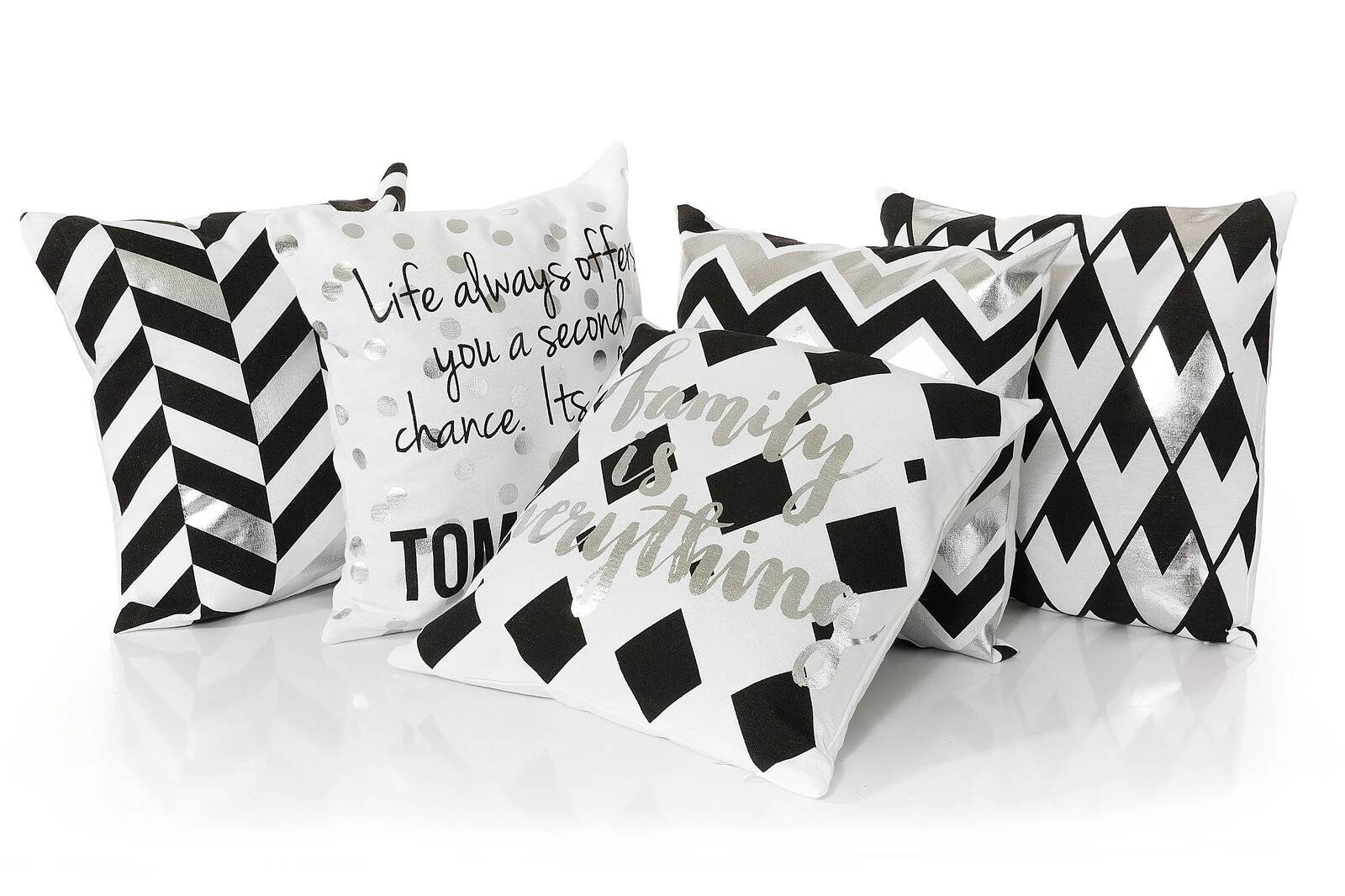 Poszewka na poduszkę z nowoczesnym, błyszczącym nadrukiem. Zapinana na zamek błyskawiczny. Prasować odwróconą na lewą stronę. szerokość: 40 cm, długość: 40 cm, kolor: biały, Gramatura: 180 GSM, Skład: 30% bawełna, 70% poliester