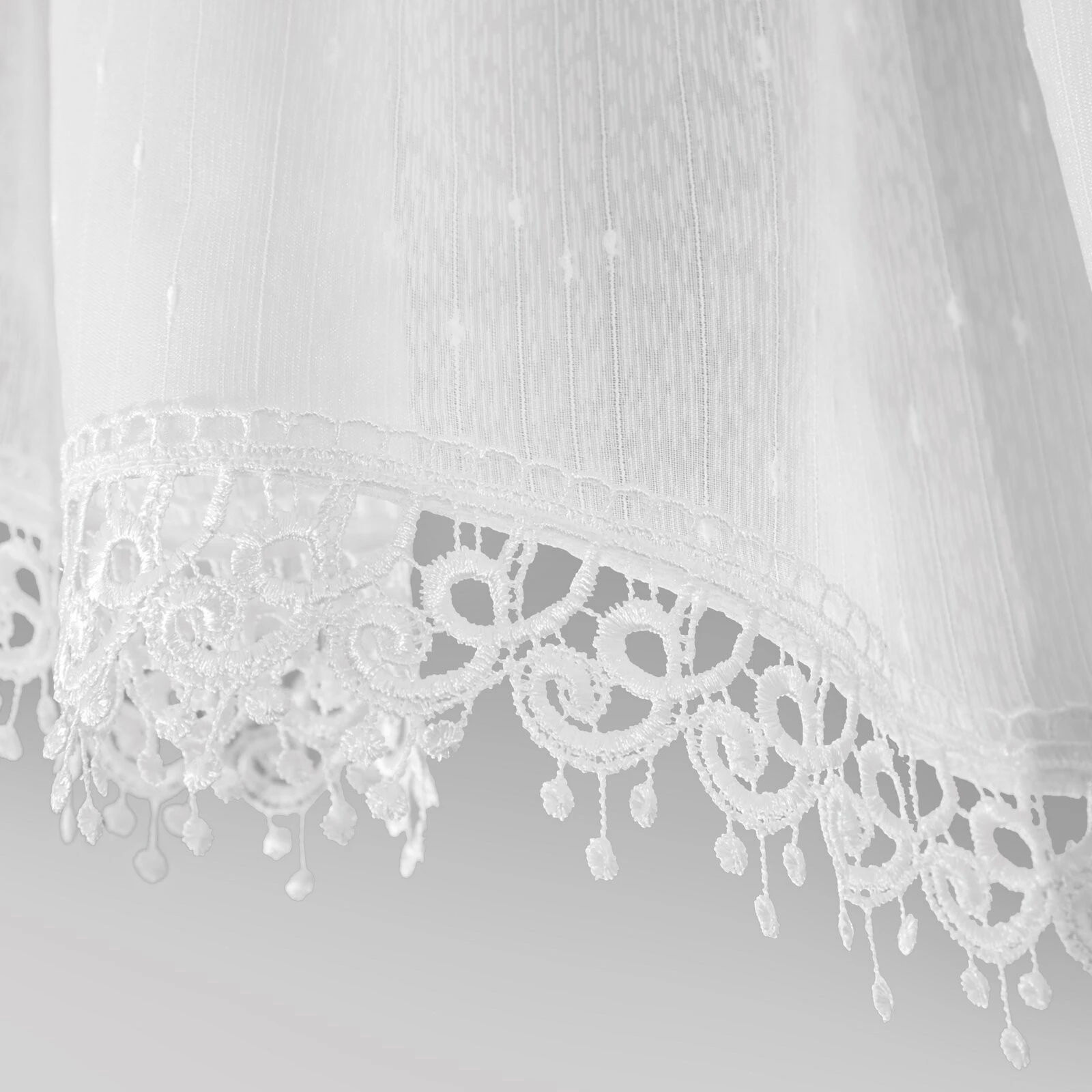 Firana gotowa z ozdobną koronką szerokość: 400 cm, długość: 65 cm, kolor: biały, Skład: 100% poliester