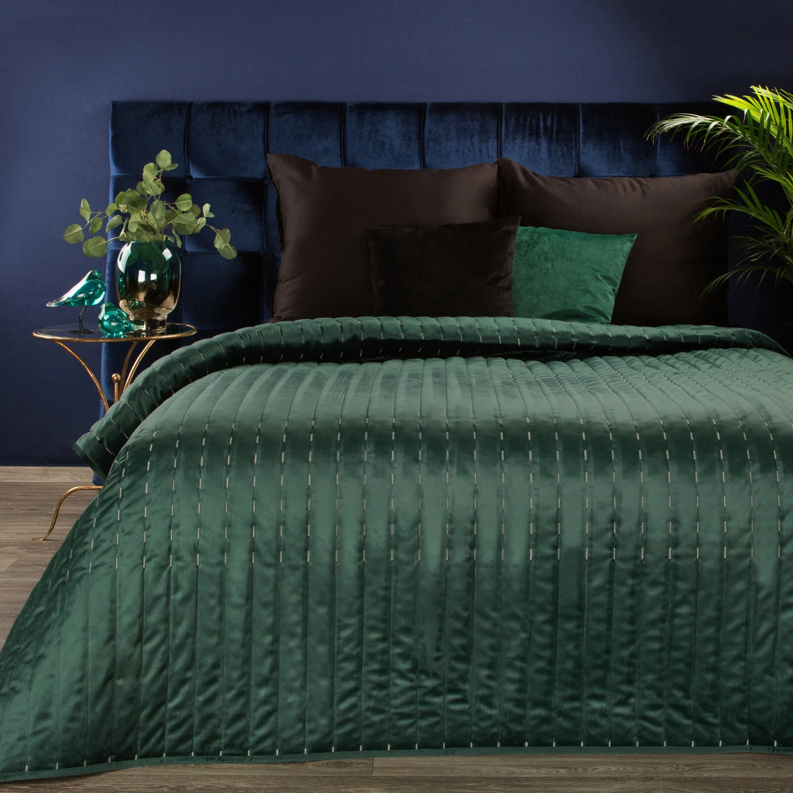 Welwetowa narzuta zdobiona błyszczącą nitką szerokość: 170 cm, długość: 210 cm, kolor: ciemnozielony, Gramatura: 250+70+150 GSM, Skład: 100% poliester