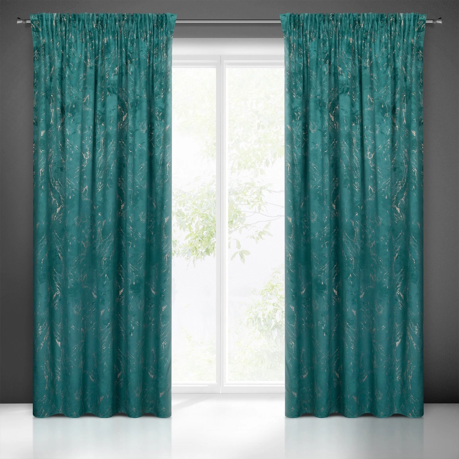 - Zasłona welwetowa ze złotym nadrukiem szerokość: 140 cm, długość: 300 cm, kolor: ciemnoturkusowy, Gramatura: 200 GSM, Skład: 100% poliester