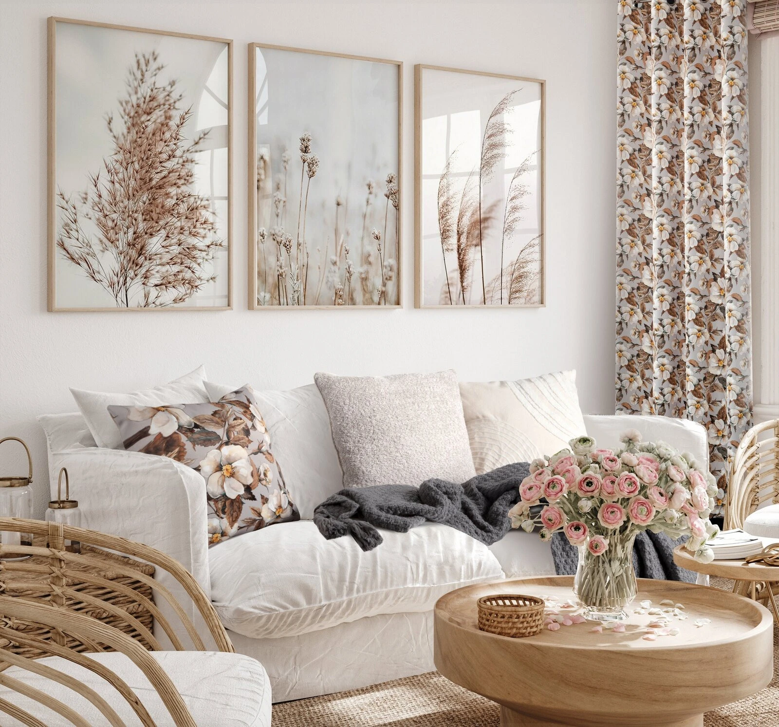 Zasłona zaciemniająca z kwiatowym nadrukiem szerokość: 140 cm, długość: 250 cm, kolor: beżowy, Gramatura: 210 GSM, Skład: 100% poliester