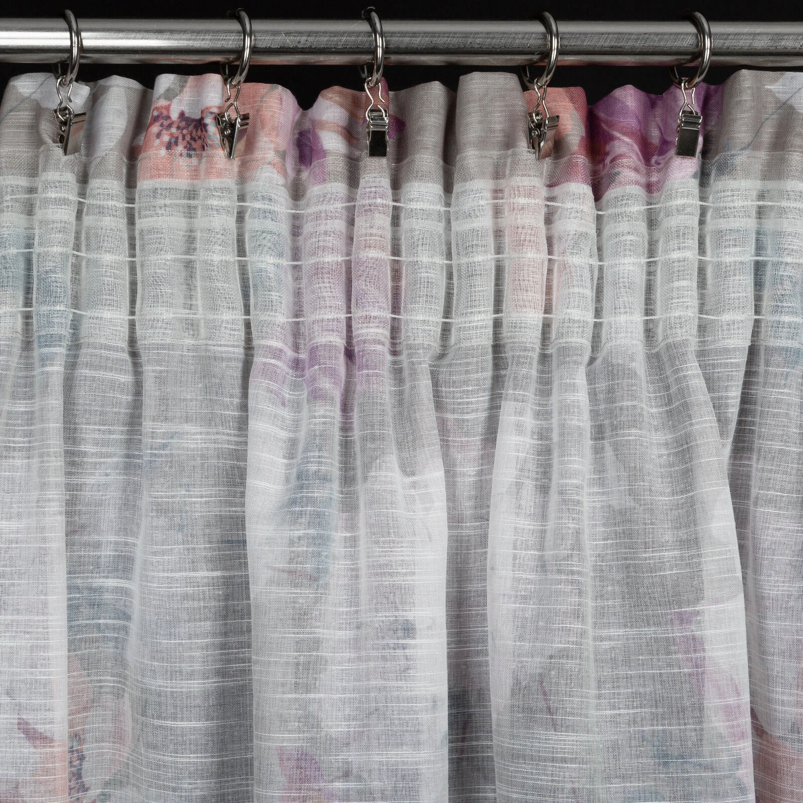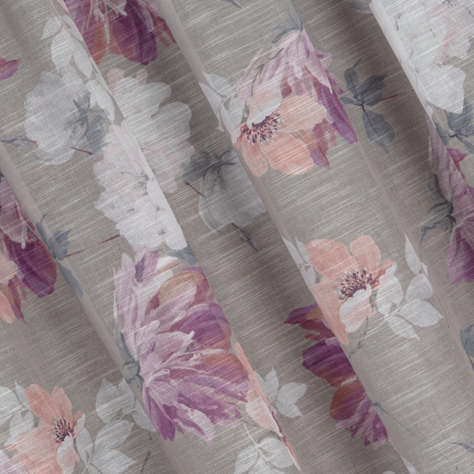 - Zasłona z etaminy z kwiatowym nadrukiem szerokość: 140 cm, długość: 300 cm, kolor: srebrny, Gramatura: 80 GSM, Skład: 100% poliester