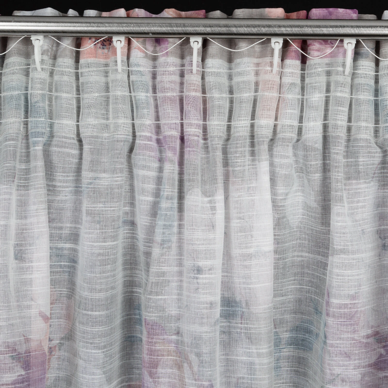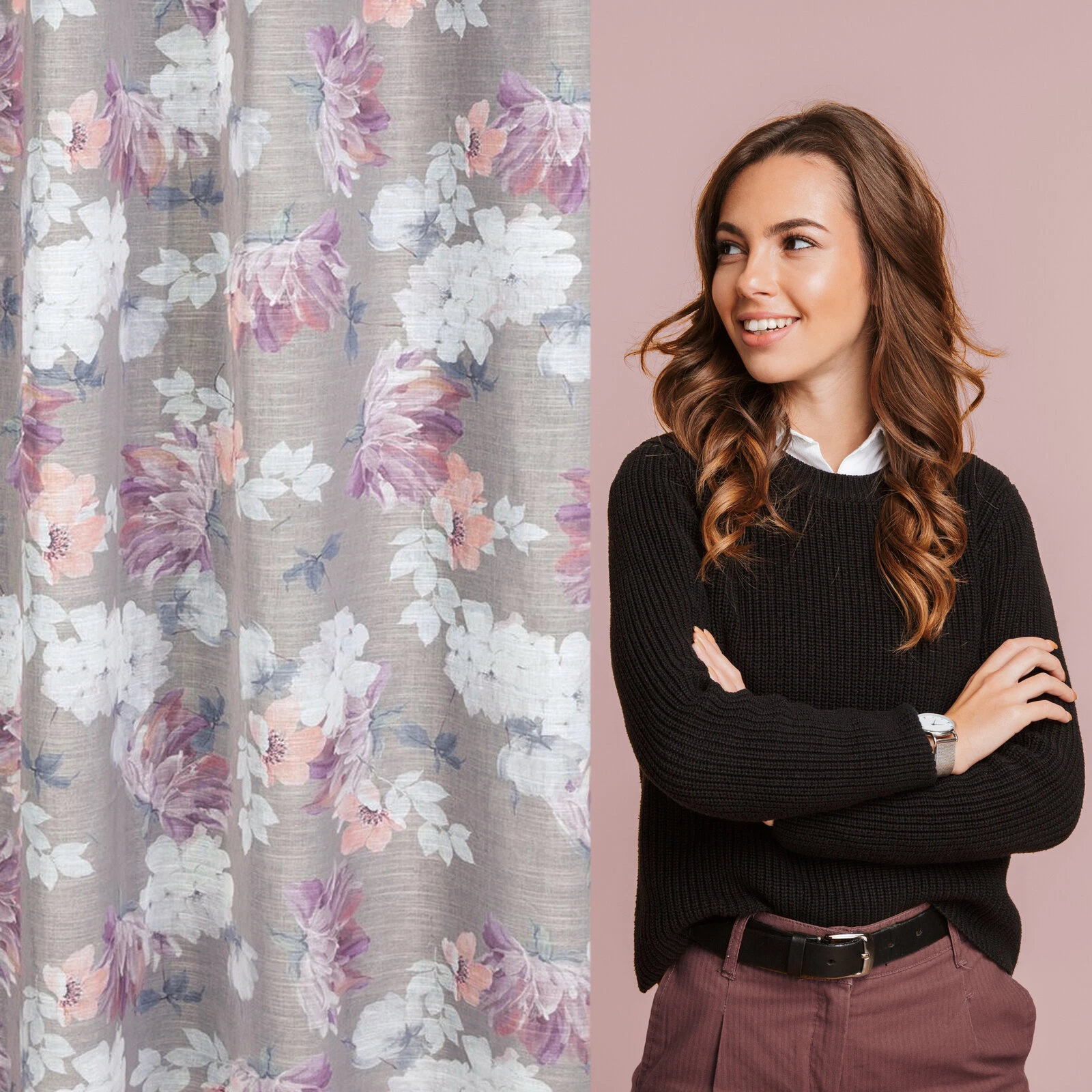 Zasłona z etaminy z kwiatowym nadrukiem szerokość: 140 cm, długość: 300 cm, kolor: srebrny, Gramatura: 80 GSM, Skład: 100% poliester