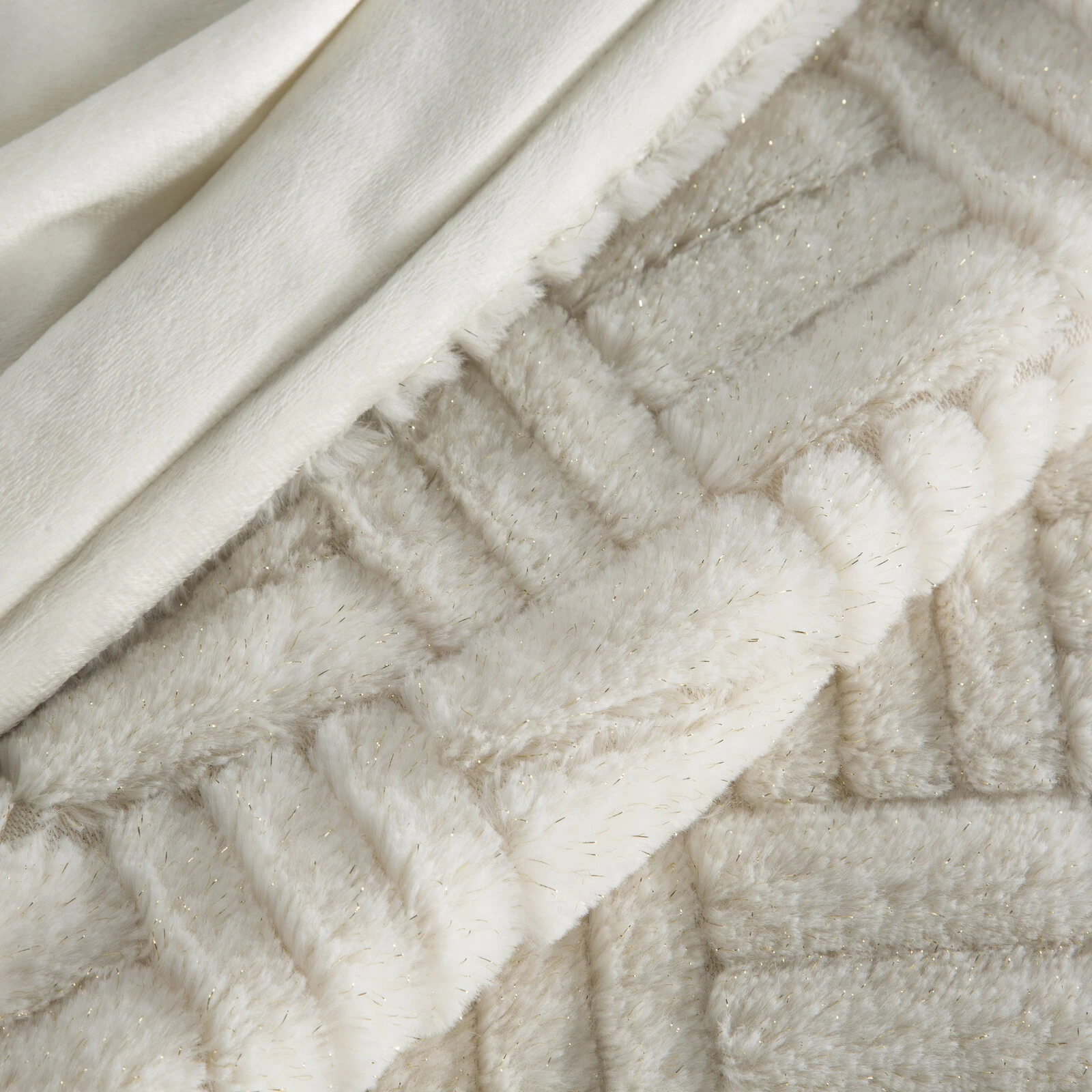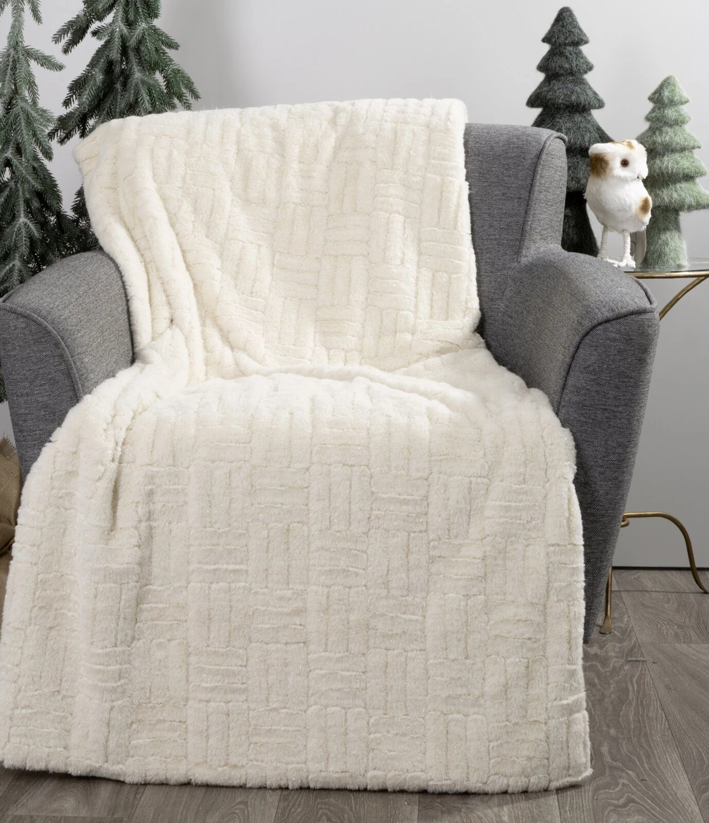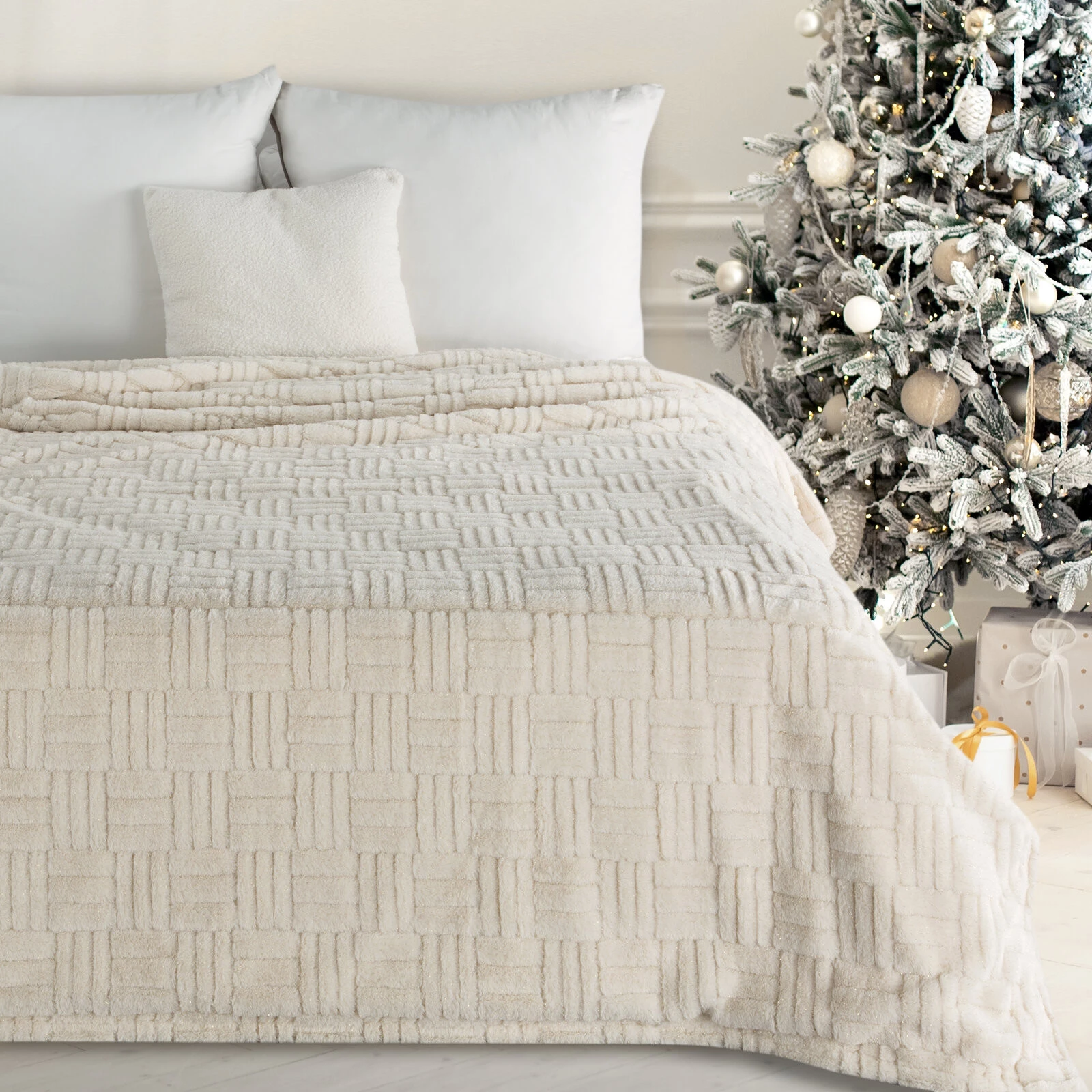 - świąteczny koc dekoracyjny szerokość: 150 cm, długość: 200 cm, kolor: kremowy, Gramatura: 380 GSM, Skład: 100% poliester
