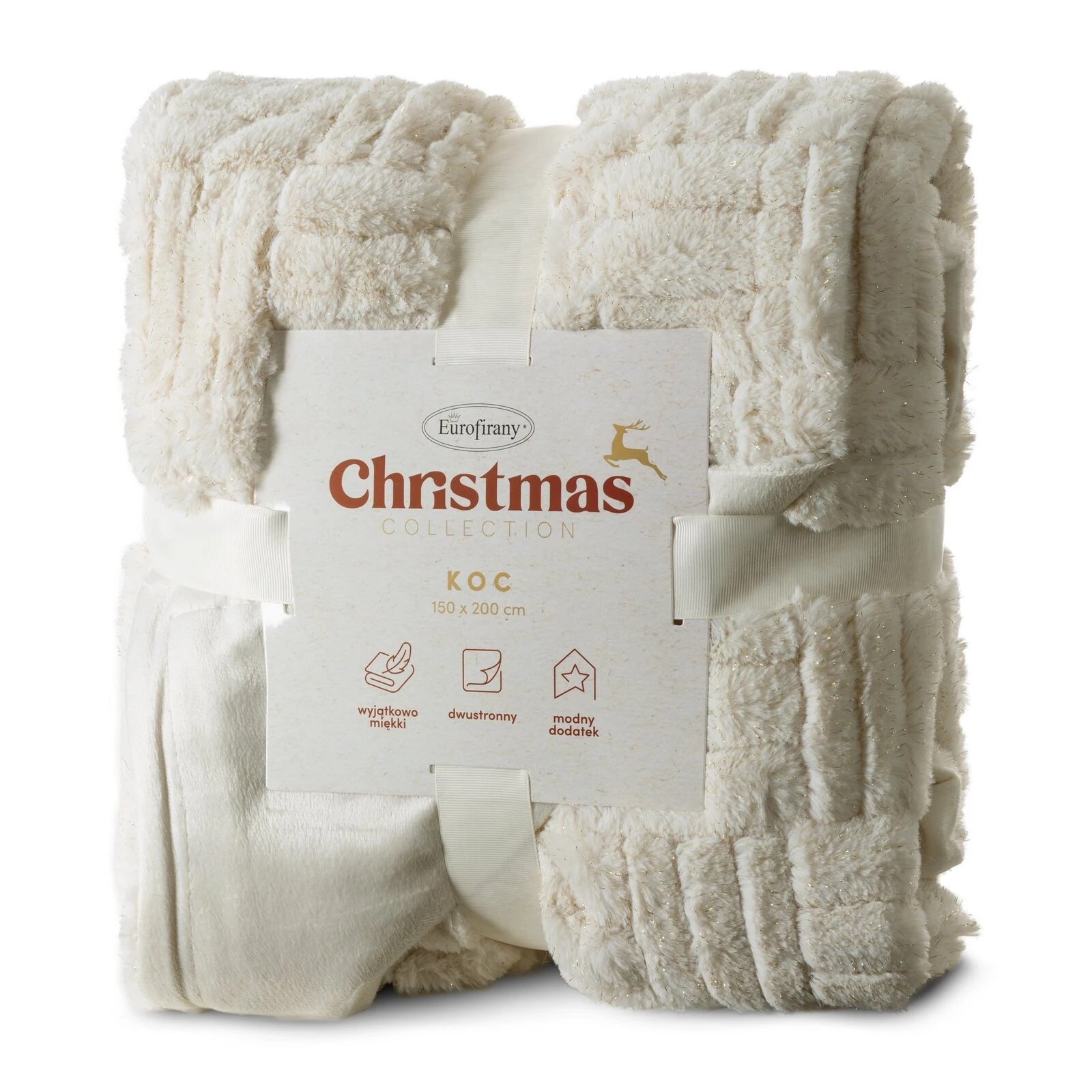 świąteczny koc dekoracyjny szerokość: 150 cm, długość: 200 cm, kolor: kremowy, Gramatura: 380 GSM, Skład: 100% poliester