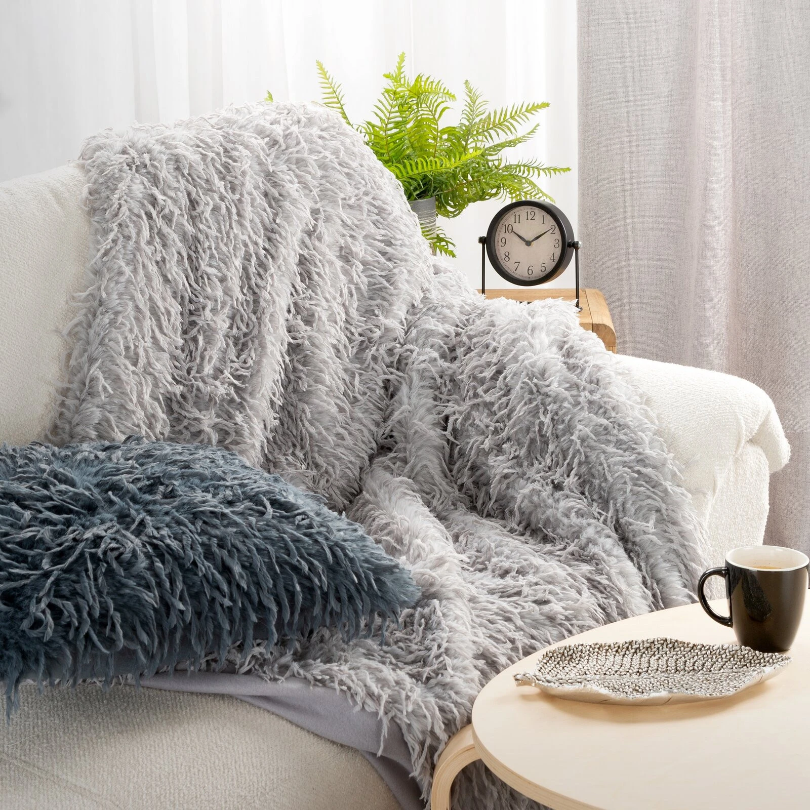 Przyjemny w dotyku koc futrzany szerokość: 130 cm, długość: 170 cm, kolor: srebrny, Gramatura: 580 GSM, Skład: 100% poliester