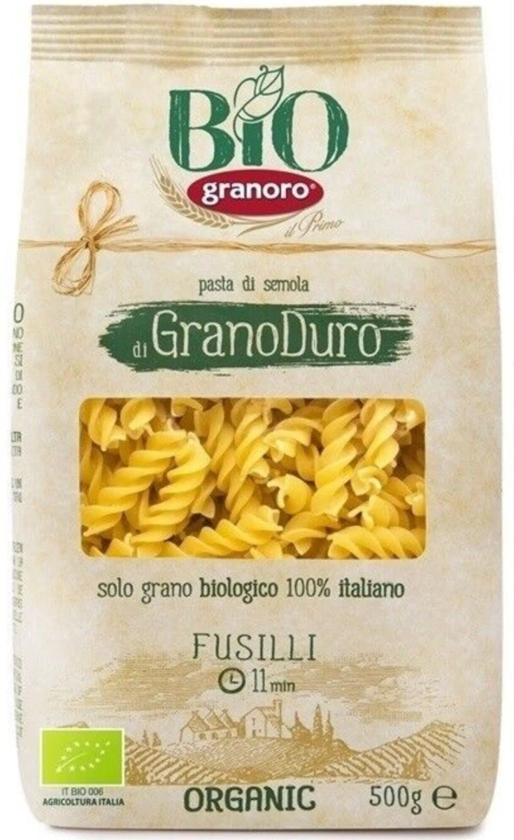 Ekologiczny makaron fusilli wyprodukowany w 100% z włoskiej pszenicy durum SKŁADNIKI: 100% mąka z pszenicy durum BIO