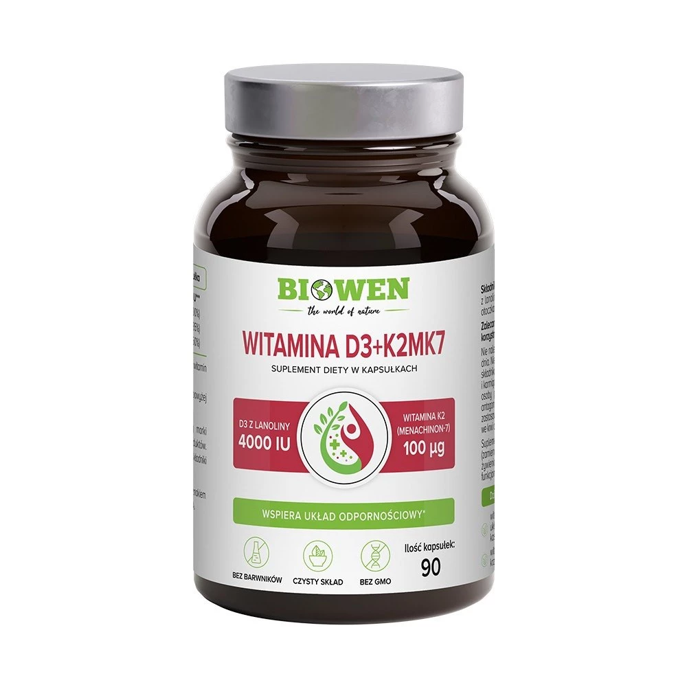Biowen Witamina D3 4000 IU + K2MK7 90 kapsułek jest specjalistycznym suplementem diety, który łączy dwa kluczowe witaminy: D3 i K2. Witamina D3 jest niezbędna do prawidłowego wchłaniania wapnia, a K2 przyczynia się do funkcjonowania procesu krzepnięcia krwi.