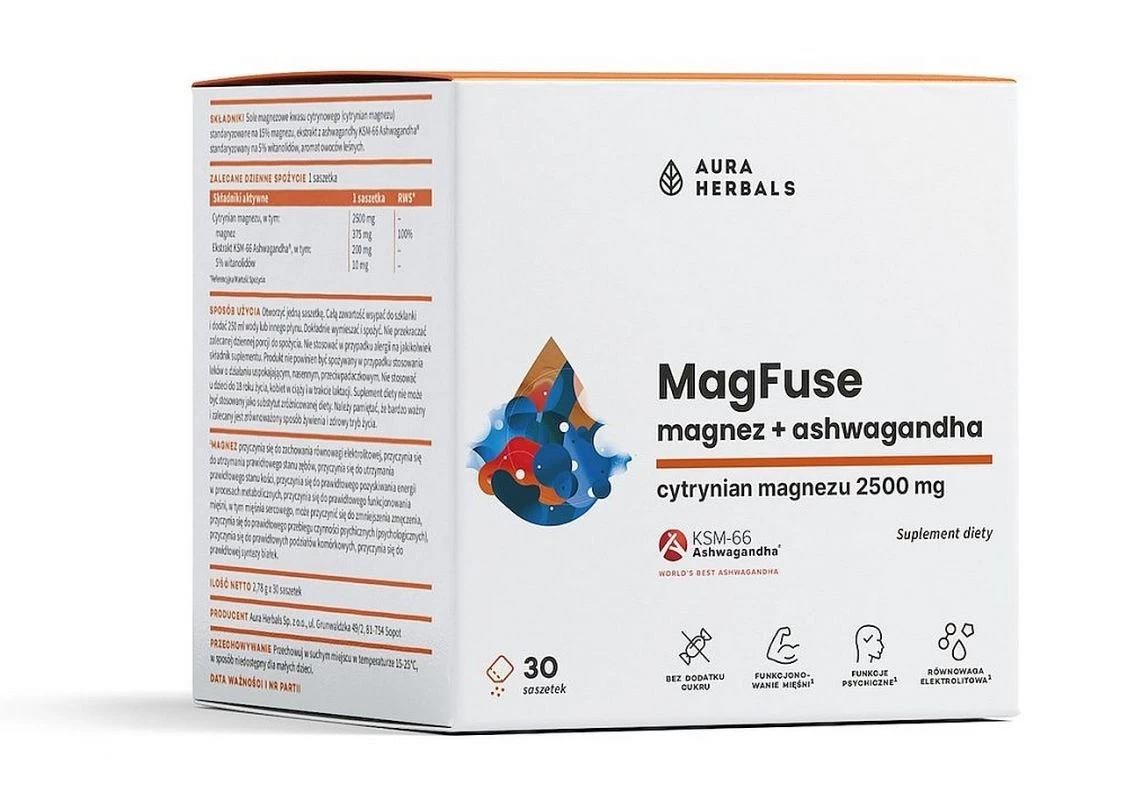 Aura Herbals MagFuse magnez ashwagandha 30 sasz