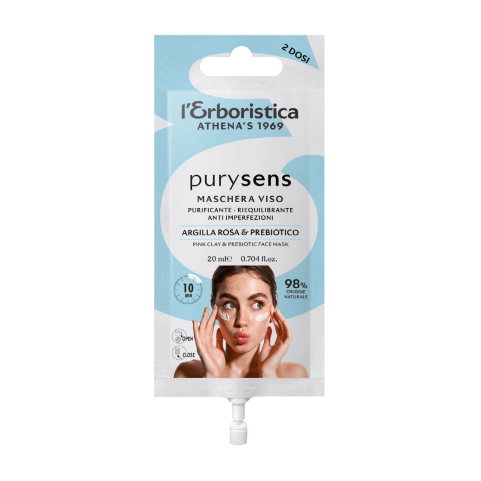 L'Erboristica - Oczyszczająca maska do twarzy różowa glinka i prebiotyki 20ml