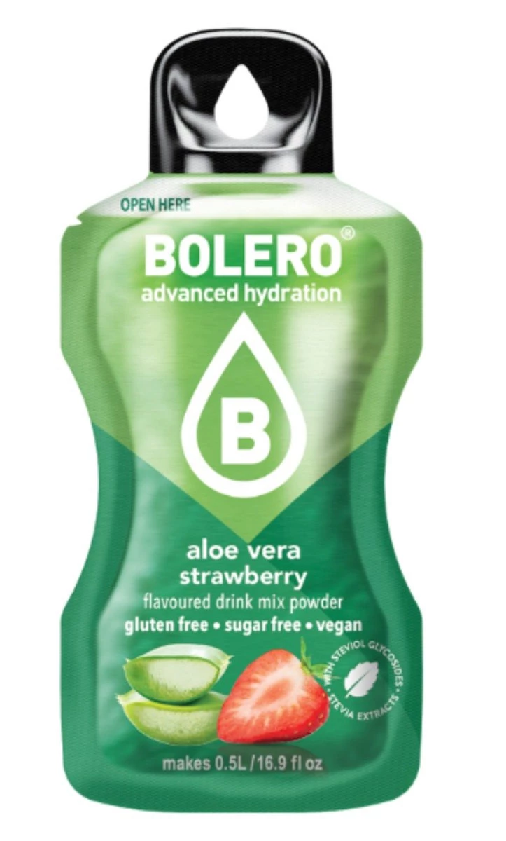 Bolero Instant Drink Aloe Vera Strawberry to innowacyjny produkt przeznaczony do przygotowywania napojów o wyjątkowym smaku aloesu i truskawki. Opakowanie zawiera 9g proszku, z którego można przyrządzić nawet do 4,5 l napoju.