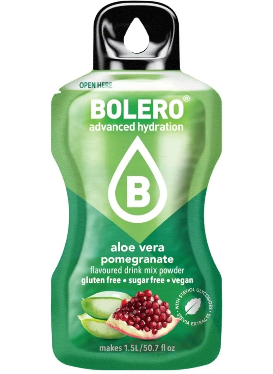 Bolero Instant Drink Sticks Aloe Vera Pomegranate to innowacyjny produkt w formie proszku, przeznaczony do sporządzania napojów o smaku aloesu i granatu. Dostępny jest on w opakowaniu o wadze 3 gramów, z którego można przyrządzić do 1,5 l napoju.