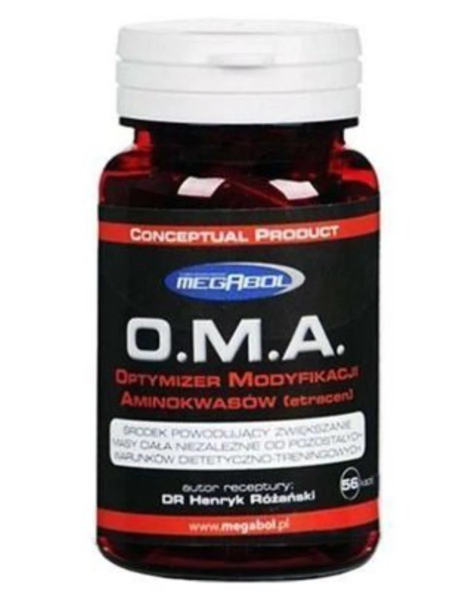 - MEGABOL O.M.A. to pierwszy na świecie suplement diety oparty na inhibitorach dekarboksylacji aminokwasów (etracen), wspierający efektywny rozwój masy mięśniowej i poprawę metabolizmu białek.