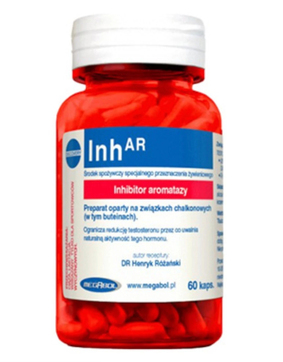- Inh-AR to innowacyjny suplement dla sportowców, oparty na naturalnych chalkonach buteinowych – pierwsza taka formuła w dostępnej suplementacji. Jego działanie polega na blokowaniu konwersji testosteronu do estrogenów, co skutkuje zwiększeniem poziomu.