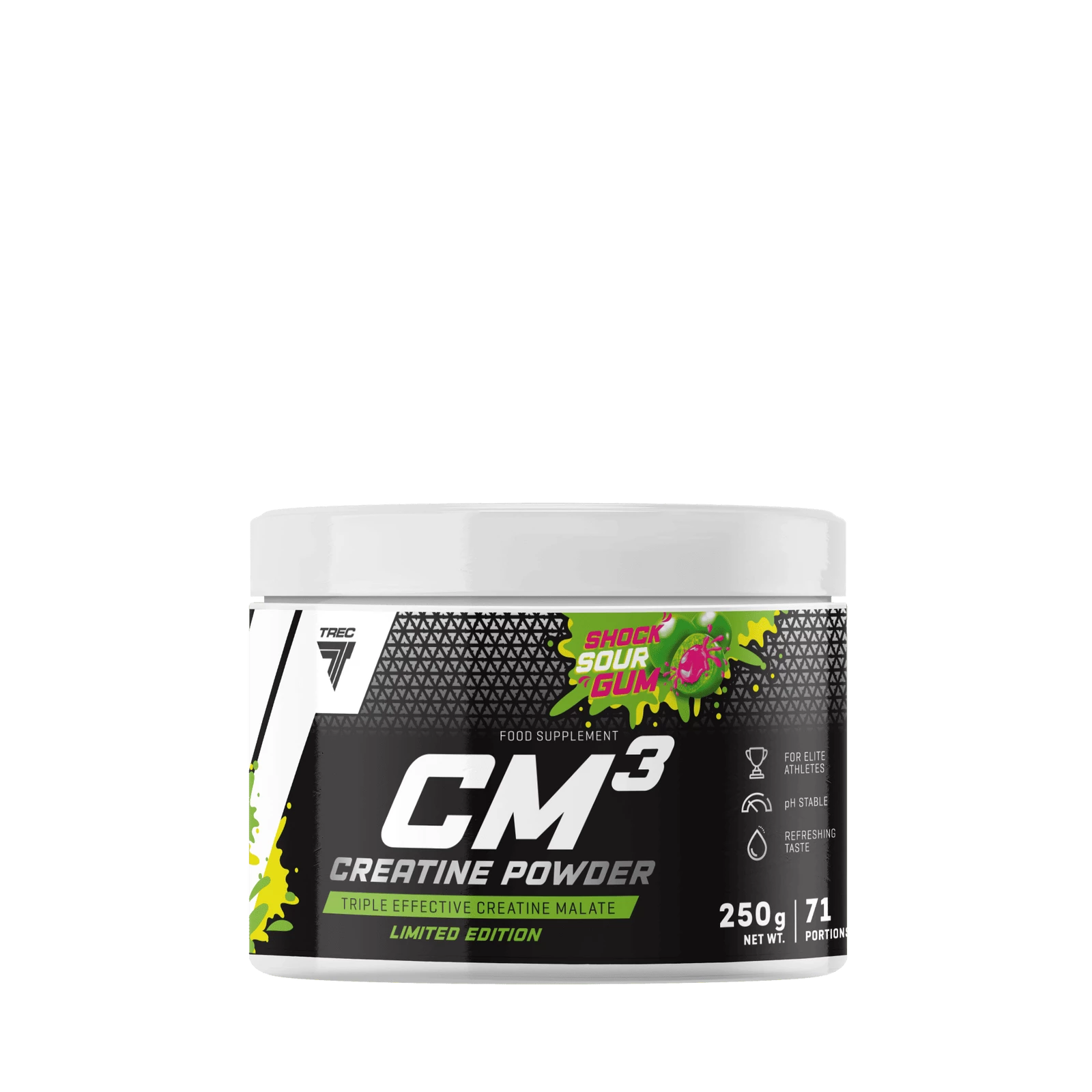 - TREC CM3 to zaawansowany suplement diety zawierający mikronizowany jabłczan kreatyny, będący połączeniem kreatyny z kwasem jabłkowym w stosunku 1:3. Produkt wspomaga przyrost masy mięśniowej, zwiększa poziom energii, poprawia regenerację.