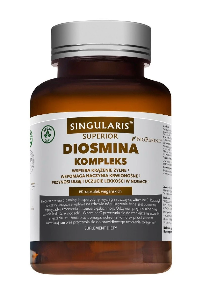 Produkt Singularis Superior Diosmina Kompleks 60 kaps. SINGULARIS to suplement diety. Nie może być stosowany jako substytut zróżnicowanej diety. Pamiętaj o zrównoważonym sposobie żywienia i zdrowym trybie życia.- Przechowuj w chłodnym miejscu, z dala od bezpośredniego światła słonecznego.