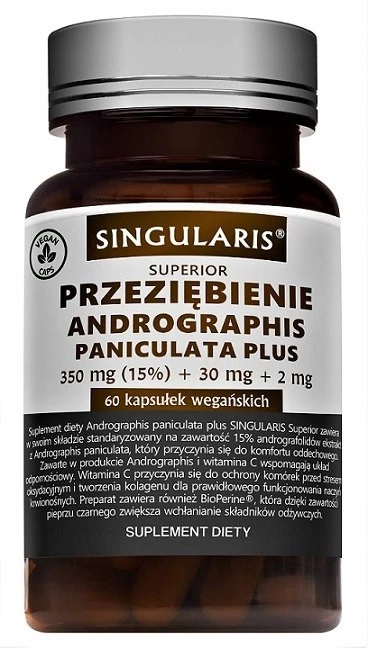 - Singularis Przeziębienie Andrographs paniculata Plus to wysokiej jakości produkt, który zawiera unikalne połączenie Andrographs paniculata i witaminy C. Suplement od Singularis ma prosty, bezpieczny skład oraz jest odpowiedni dla wegan i wegetarian.