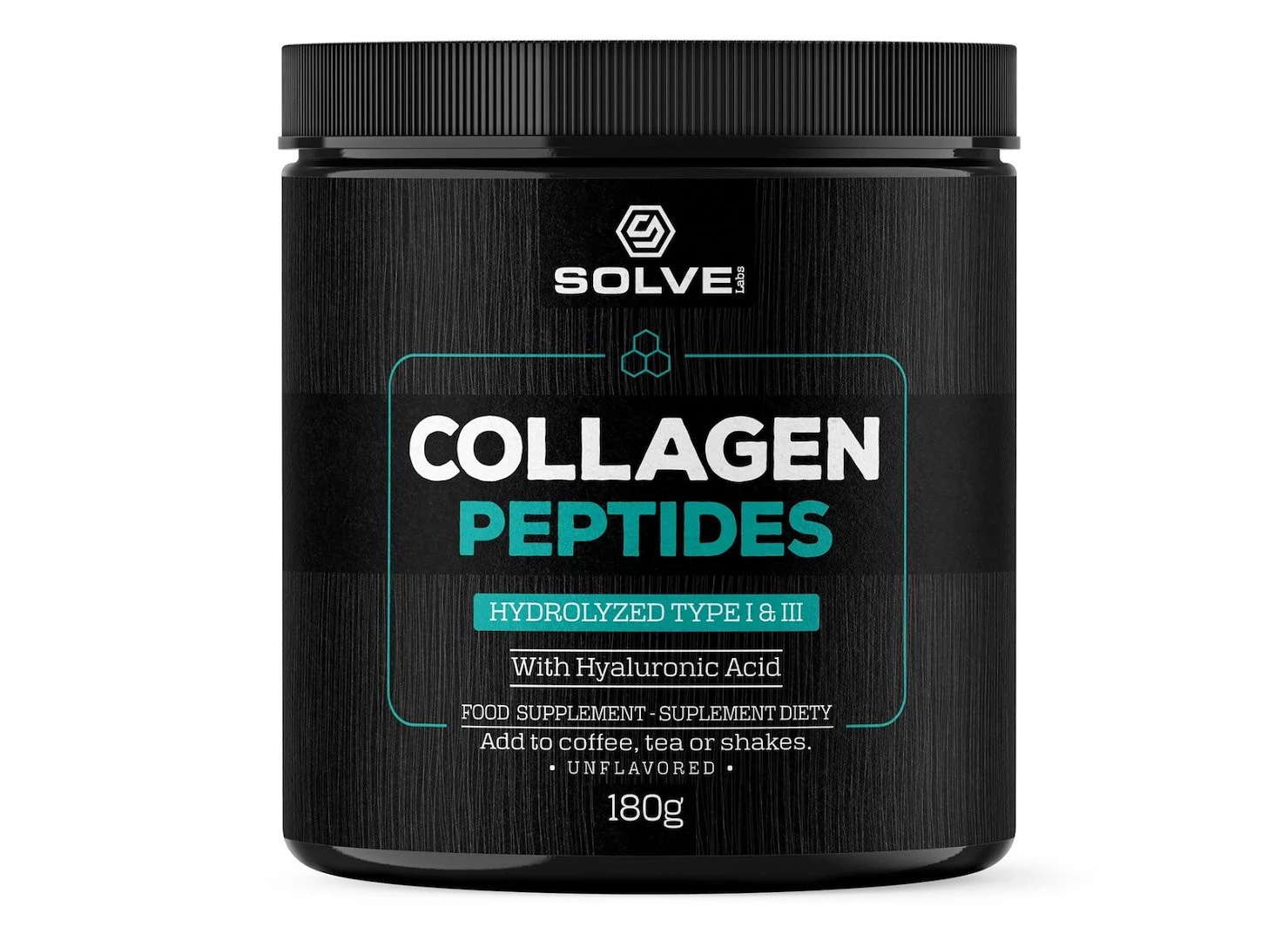 Produkt SolveLabs Collagen (hydrolizowany kolagen w proszku) typu 1 i 3 180g SolveLabs to suplement diety. Nie może być stosowany jako substytut zróżnicowanej diety. Pamiętaj o zrównoważonym sposobie żywienia i zdrowym trybie życia.- Przechowuj w chłodnym miejscu, z dala od bezpośredniego światła słonecznego.