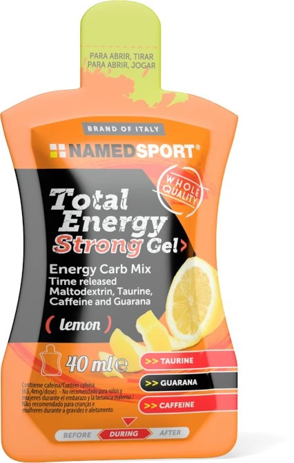 Suplement diety Namedsport Total Energy Strong Gel to wysokiej jakości produkt, który łączy w sobie węglowodany o różnym czasie wchłaniania z kofeiną, guaraną i tauryną. Preparat ten przeznaczony jest głównie dla osób, chcących w szybki, bezpieczny i naturalny sposób zwiększyć swoją energię. Ma on postać pysznego żelu o smaku cytrynowym.
