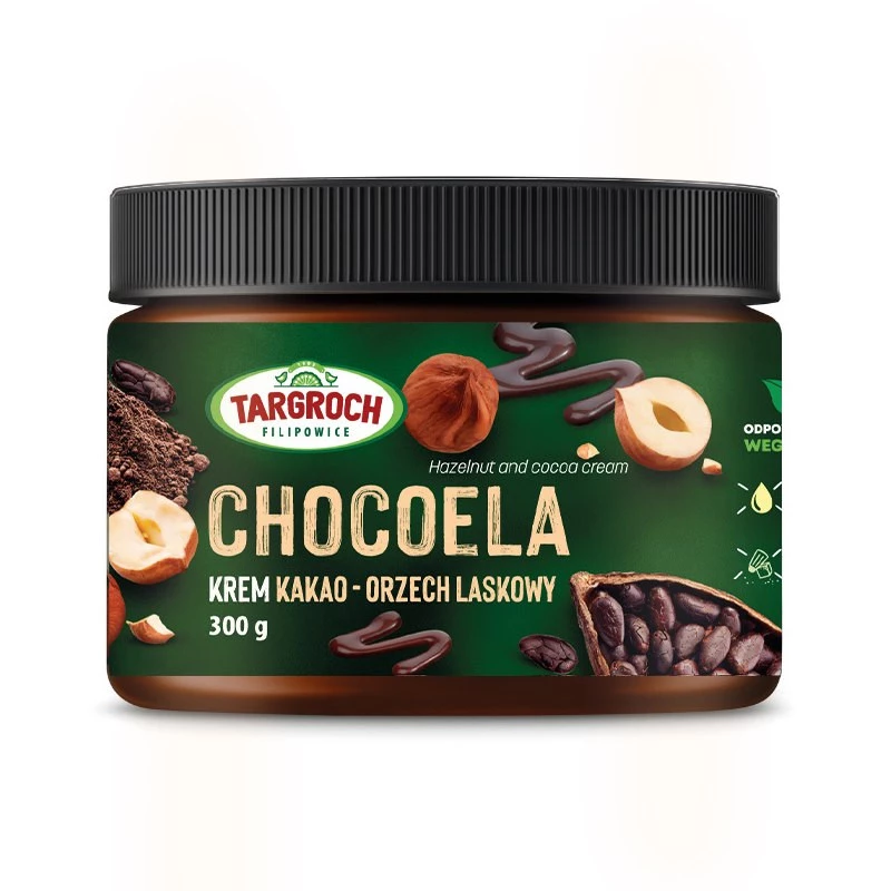 - Targroch Krem CHOCONUTELA z orzechów laskowych i kakao 300 g to świetne uzupełnienie Twojej codziennej diety. Możesz delektować się nim solo lub dodawać do deserów, kanapek i zdrowych przekąsek.