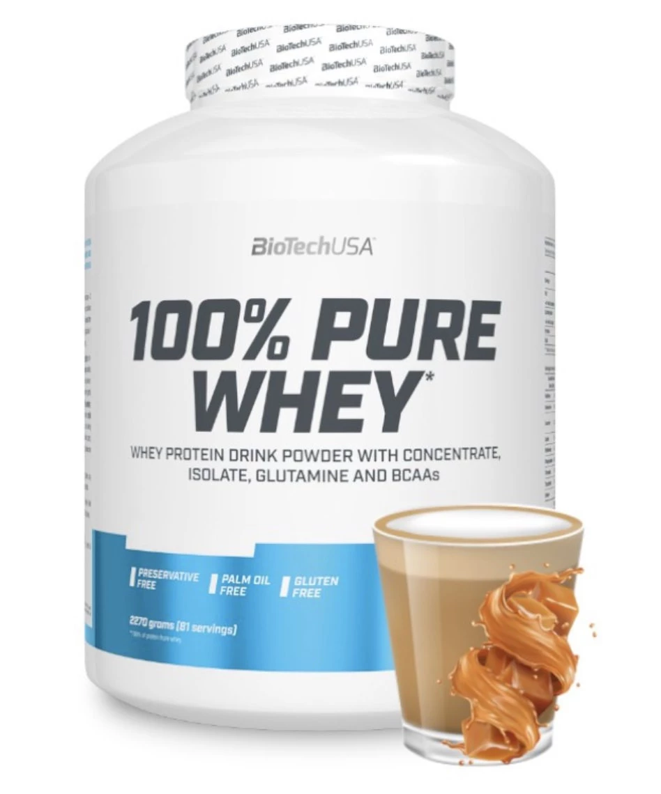 - BioTech USA 100% Pure Whey 2270 g o smaku karmel-cappuccino to suplement diety w formie proszku, szczególnie polecany osobom aktywnym fizycznie, które pragną wzbogacić swoją codzienną dietę o wartościowe źródło białka.