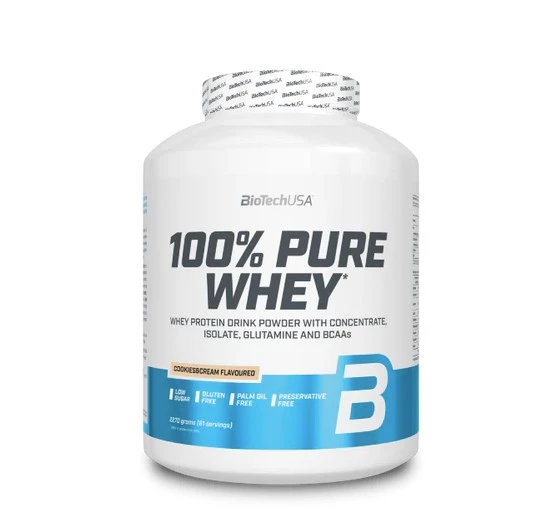 - BioTech USA 100% Pure Whey 2270 g o smaku cookies&cream to suplement diety w formie proszku, szczególnie polecany osobom aktywnym fizycznie, które pragną wzbogacić swoją codzienną dietę o wartościowe źródło białka.