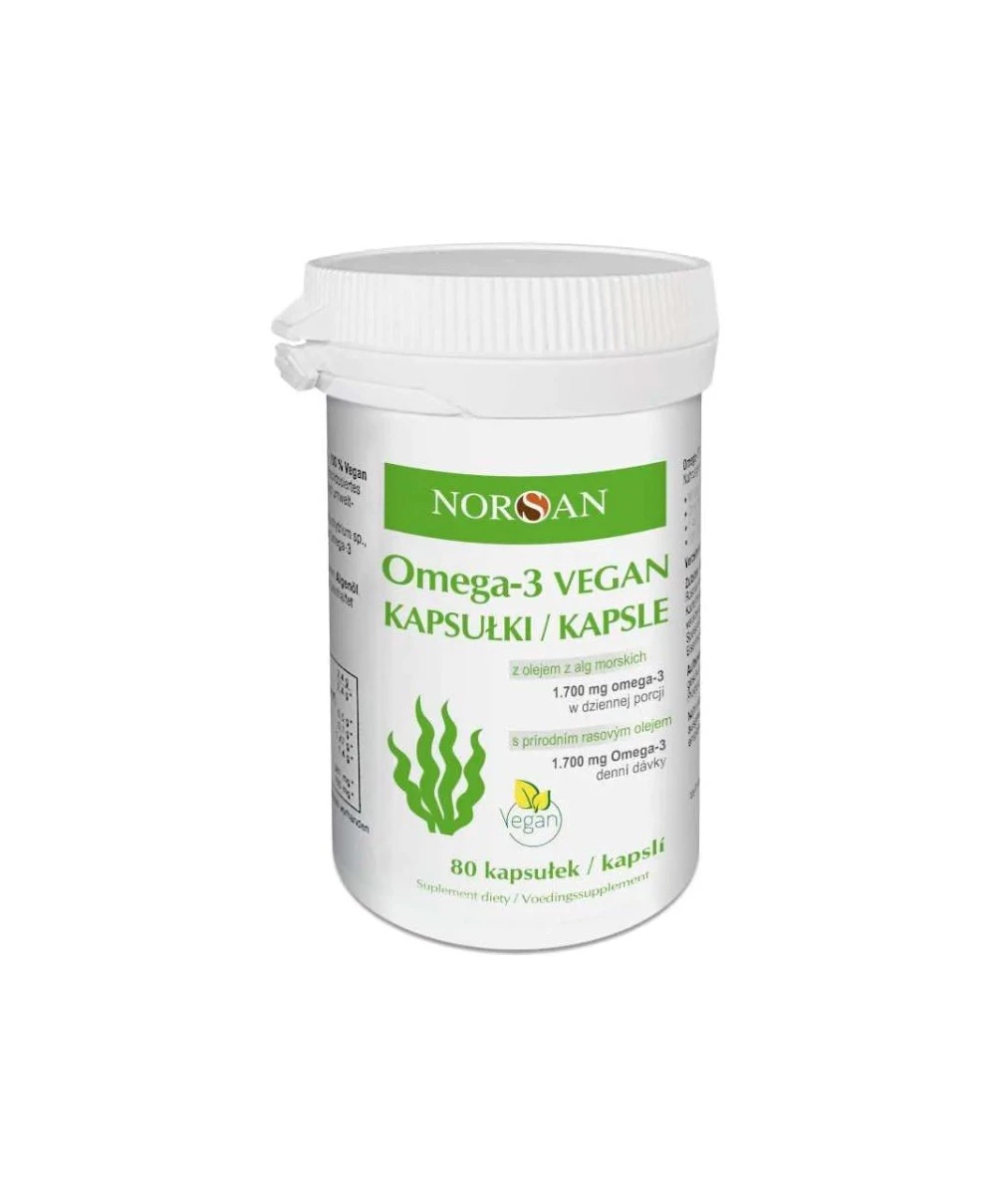 Omega-3 Vegan - 100% roślinny olej z alg (80 kaps.) Norsan