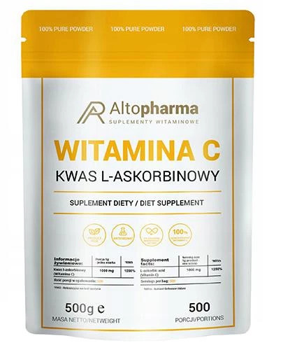 - Altopharma Witamina C proszek to suplement diety zawierający 100% kwas l-askorbinowy (witaminę C) w wygodnej formie proszku. Produkt wspiera układ odpornościowy, produkcję kolagenu i ochronę komórek przed stresem oksydacyjnym.