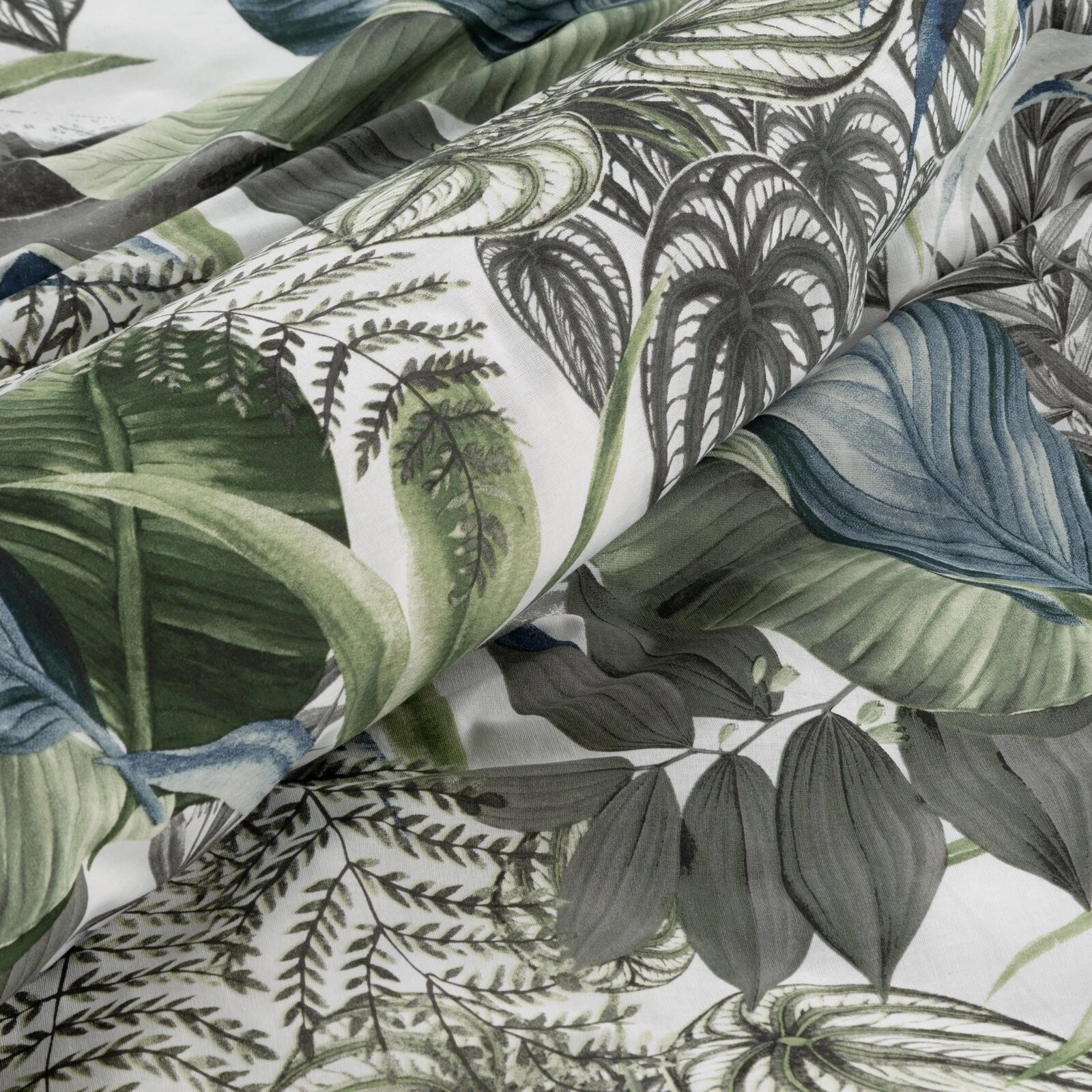 Pościel DAVOS 2B z kolekcji Classic Family to połączenie naturalnej bawełny z eleganckim wzornictwem inspirowanym tropikalnym urokiem. Biała tkanina została ozdobiona motywem zielonych liści, które wprowadzają do wnętrza świeżość i naturalny klimat. Dzięki przewiewnej strukturze oraz wyjątkowej miękkości bawełny, komplet zapewnia komfortowy sen przez cały rok, a trwałość materiału gwarantuje zachowanie formy i kolorów nawet po wielu praniach.